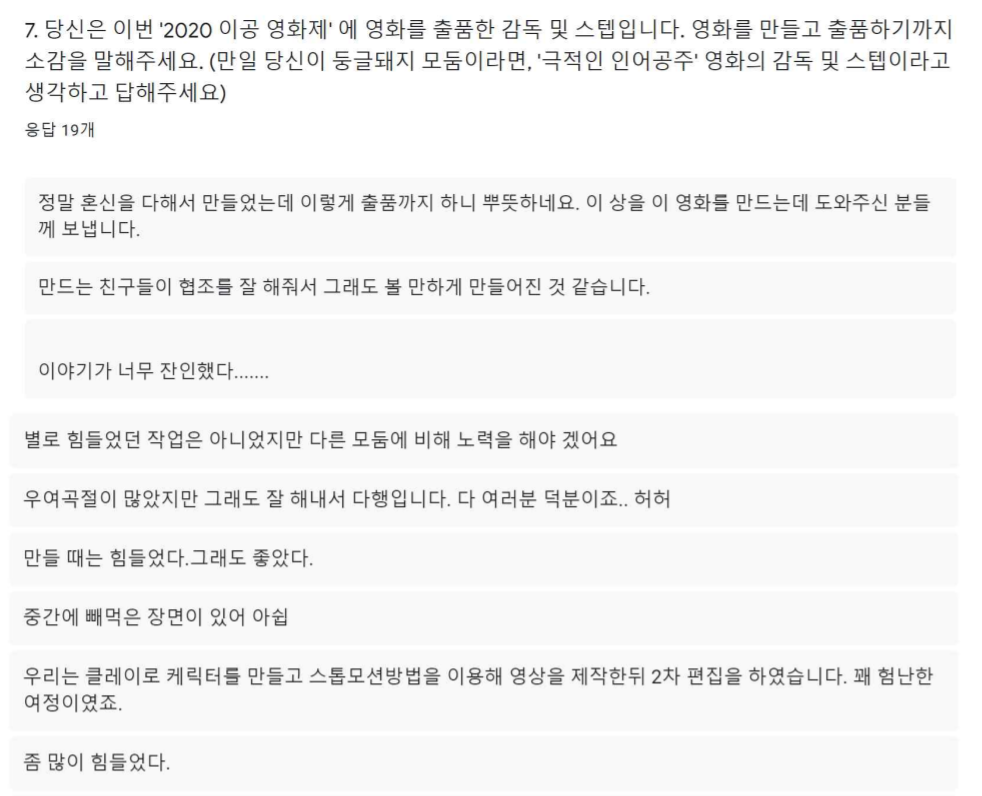 영화제 심사 및 소감 발표를 묻는 '구글 설문' 일부