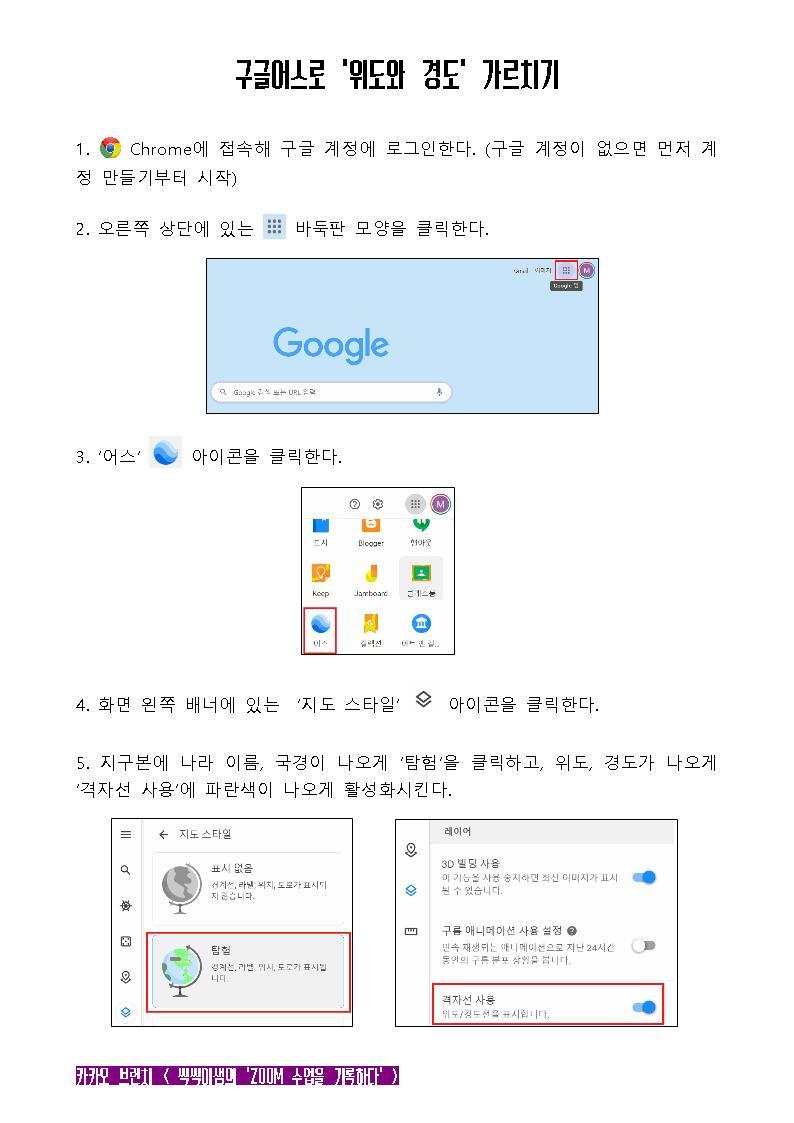 구글어스로 위도와 경도 가르치는 방법