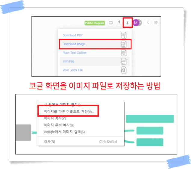 코글은 유튜브 영상 자료가 없어 맨땅에서 헤엄치는 격으로 이것저것 만져보며 사용법을 알게 되었다. 마인드맵 가지 치는 방법, 이미지를 삽입하는 방법, 글씨 모양이나 크기를 조절하는 방법, 가지를 삭제하는 방법, 코글 화면을 이미지로 저장하는 방법 등은 쉽게 터득할 수 있었다. 구글 도구들은 직관적이니까. 그리고 알게 된 만큼 수업에 적용하기로 마음 먹었다.