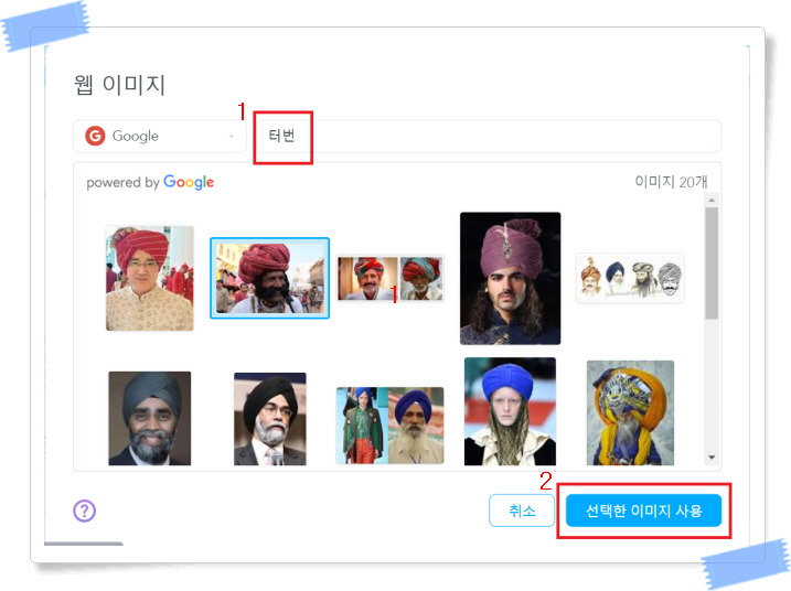 이미지 넣는 방법 (단, 아쉽게도 구글 이미지만 넣을 수 있음)