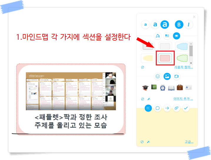 이처럼 모둠 조사 활동이나 모둠 프로젝트 계획 활동에 적용할 수 있었다.