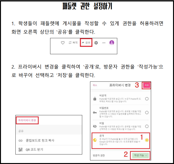 2. 패들렛 권한 설정 및 주소 안내하기