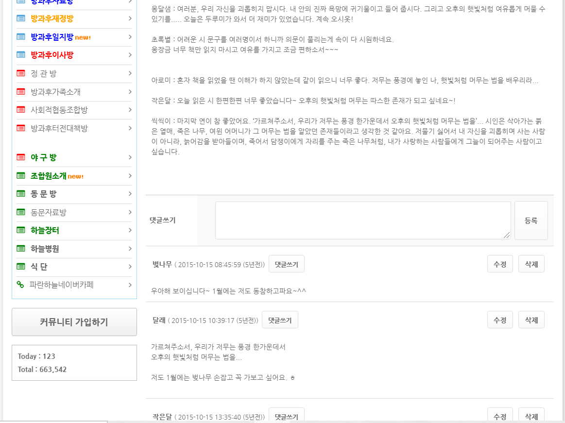 9099번째 게시글, 자유게시판, 파란하늘공동육아 홈페이지