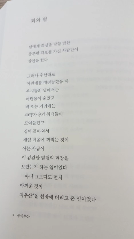 김수영의 '죄와 벌' 시를 나눌 때였던 것 같다. 우산대로 여편네를 때려눕혔다는 김수영의 그 민낯 구절에서 비록 시에 나온 것처럼 육체적 폭력까진 아니지만, 언어적, 감정적 폭력을 자행하던 각자의 남편네들이 떠올랐고, 우린 서로에게 우리의 속살을 내보였으며, 위로하고 함께 공감해주었다.