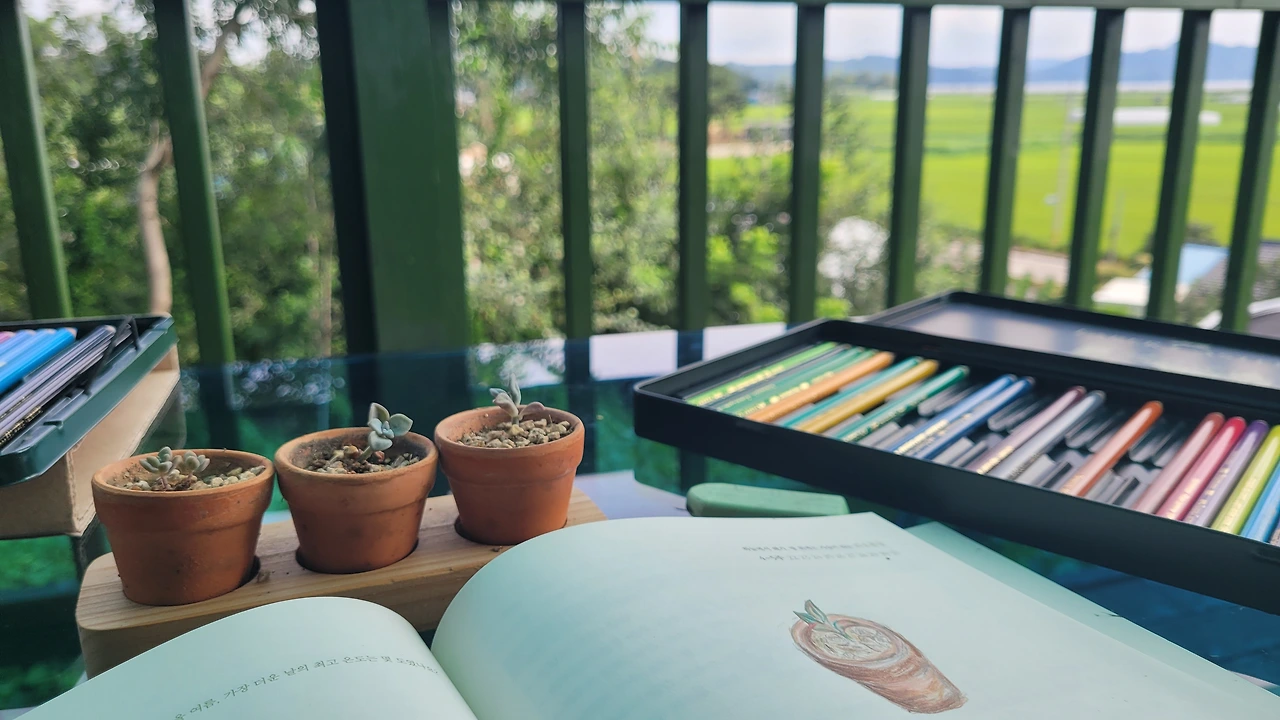 대신 숙소 싱크대에 놓여 있던 작은 다육이 화분을 가져와 그려보았다