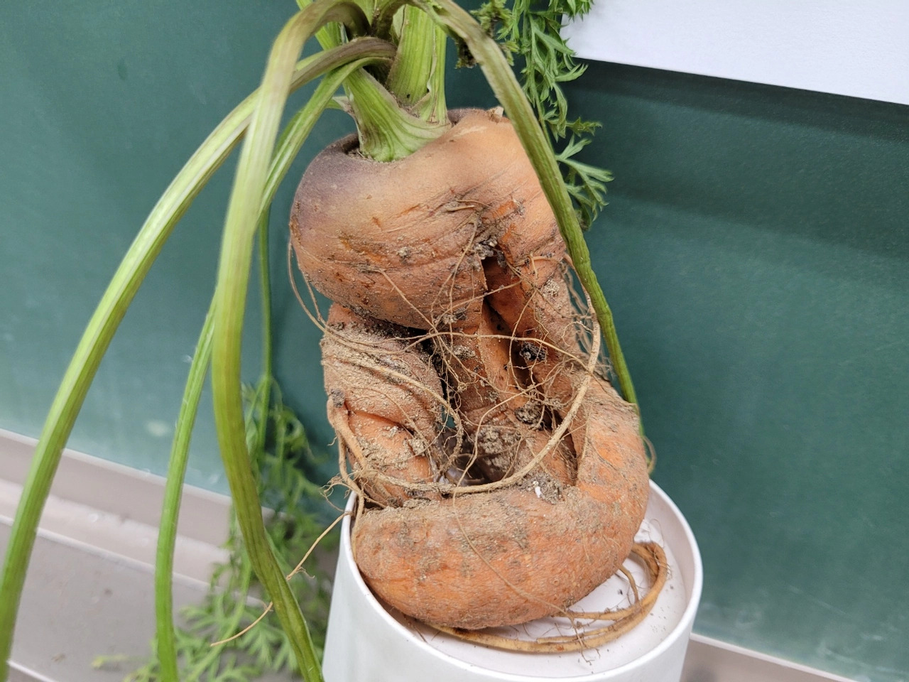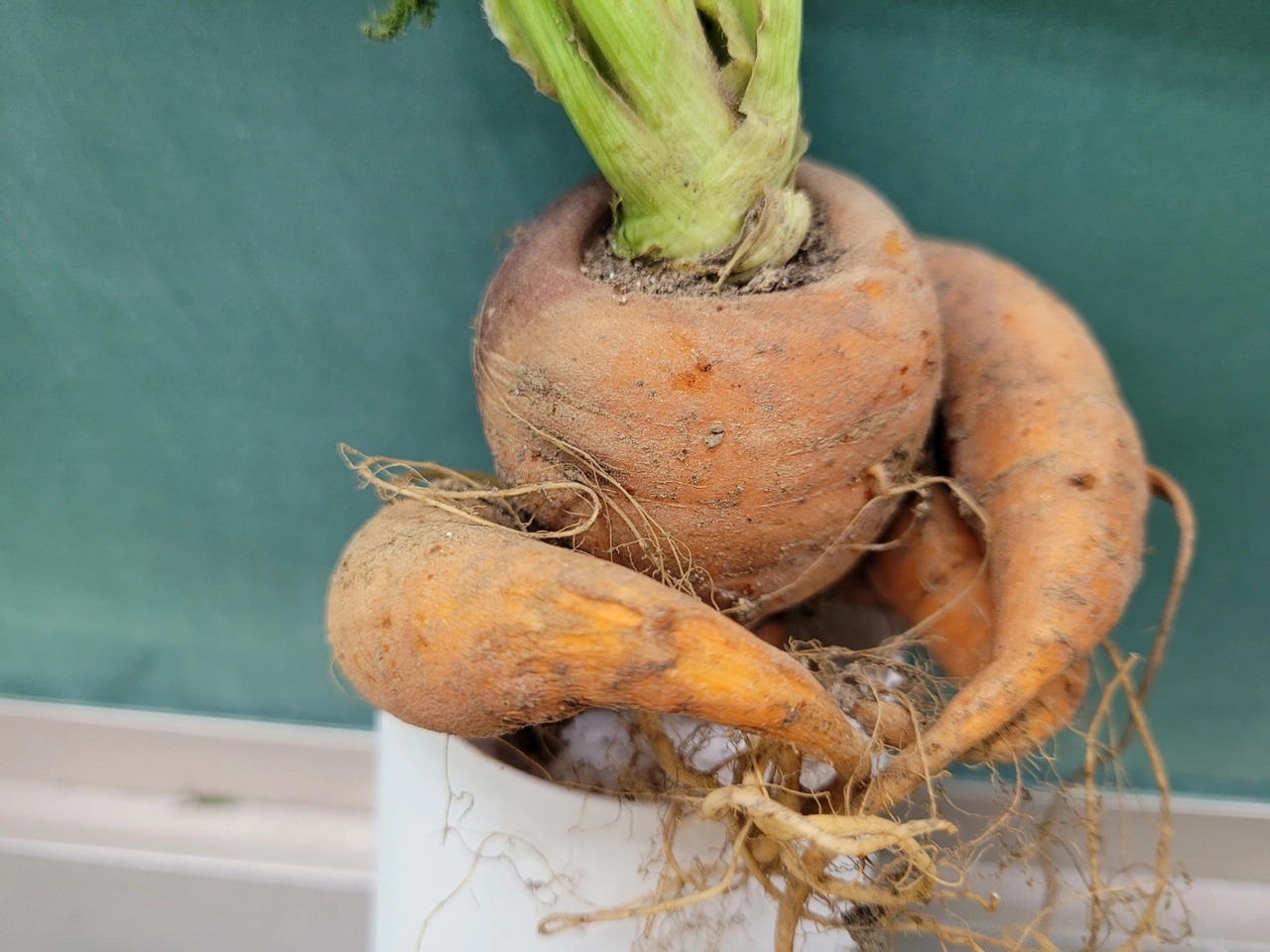 뿌리 작물은 모종으로 심는 게 아니다. 처음부터 씨를 뿌려 키워야 한다. 모종을 옮겨 심을 때, 뿌리 작물이 새로운 흙에 적응하기 위해 엄청난 스트레스를 받는다고 한다. 그래서 모양이 이상하게 자란다고 한다.