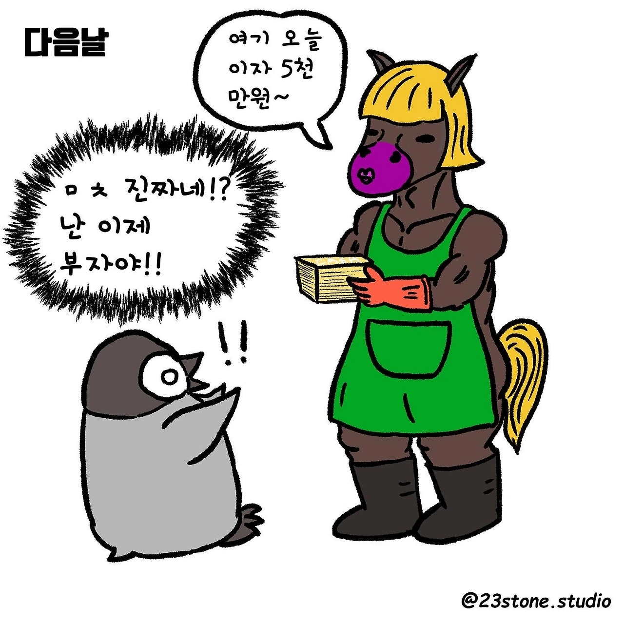 뉴욕 컬럼비아 대학교에서 석사를 받고 맨하탄에서 일 하고 있습니다. 사회 풍자가 담긴 이야기를 다양한 동물 캐릭터를 통해 그려냅니다.