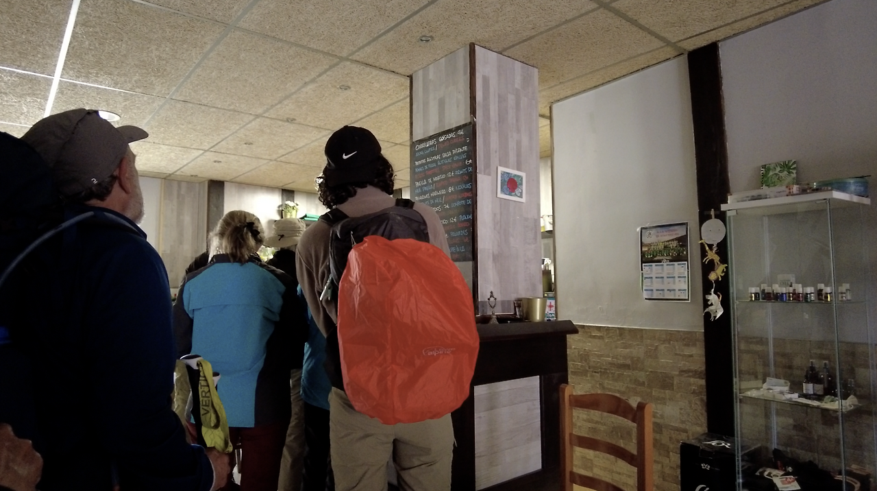 일단 마을 입구에 있는 식당 겸 알베르게에 들어갔다. 피자를 팔고 있었는데, 카운터에는 이미 한 순례자가 서 있었다. 피자를 사 먹으려는 걸까? 기대했지만 숙소 체크인을 하는 것 같았다. 우리는 초조하게 차례를 기다렸고, 마침내 자리가 있는지 물었다.