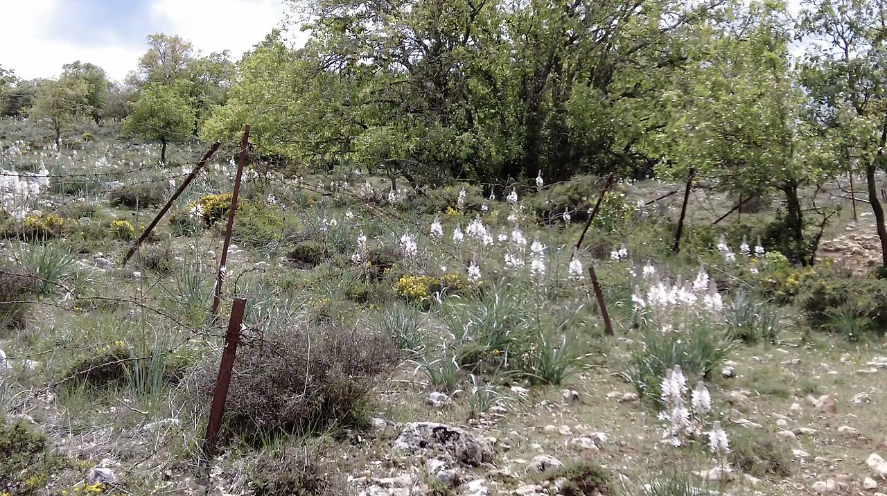 이내 꽤 높은 언덕이 나왔는데, 기묘하게 위로 쭉 뻗은 가지에 촘촘히 삔 꽃과 자갈 같은 돌멩이라 널브러져 있는 오르막을 오르자 뜬금없는 철 십자가가 나타났다.