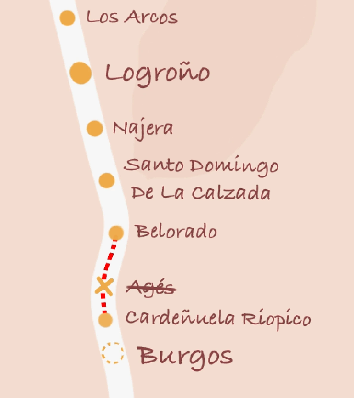 오늘은 Belorado(벨로라도)라는 마을에서부터 걷기 시작해 약 29km 떨어진 Agés(아헤스)라는 마을로 가는 일정이었다. 계획대로 걸어도 꽤 먼 거리를 가야 해서 걱정이 되었는데, 거기에 더해 숙소 예약까지 실패했기 때문에 걱정이 더 깊어졌다.