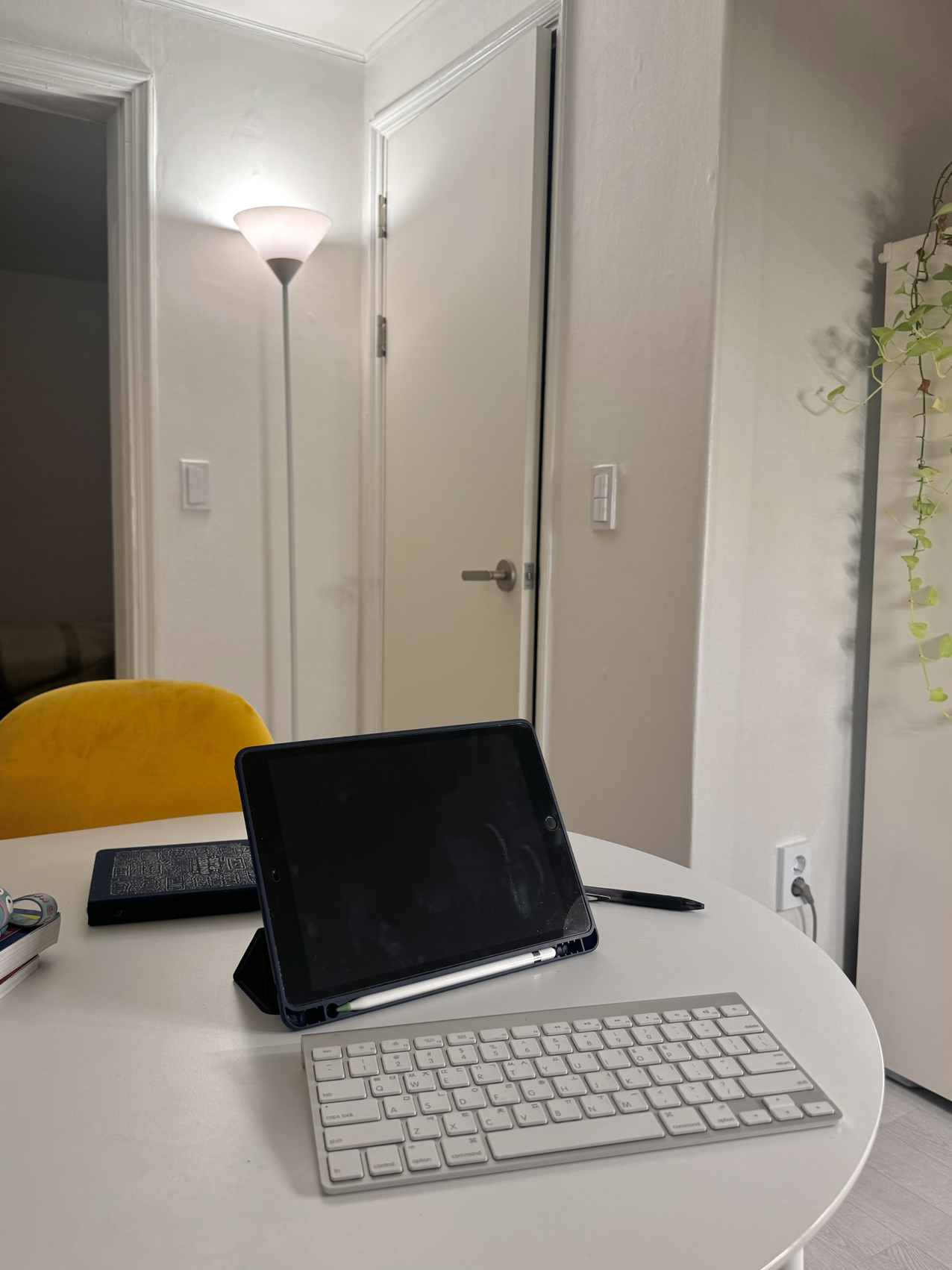 이전에는 팔만 뻗으면 모든 것에 닿을 수 있던 원룸에서 이사해 지금은 침실, 부엌, 드레스룸이 전부 구분되는 넓은 집에서 살게 됐다. 늘 나의 문제는 퇴근 후 침대로 뛰어드는 것부터 시작이었는데(눕고 나면 모든 것을 미뤄버린다) 이제는 공간이 분리되었으니 침실에서 나와 최대한 거리를 둘 수 있으므로, 그렇게 하기로 했다. 그리고 자기 전까지는 테이블 앞에 앉아 아무것도 하지 않더라도, 침대에 눕지 않는 것을 최우선으로 한다. 앉기만 한다면 심심해서 뭐든지 하겠지라는 게 솔직한 심정. 뭐라도 하면 그냥 누워있는 것보단 좋을 것이다.