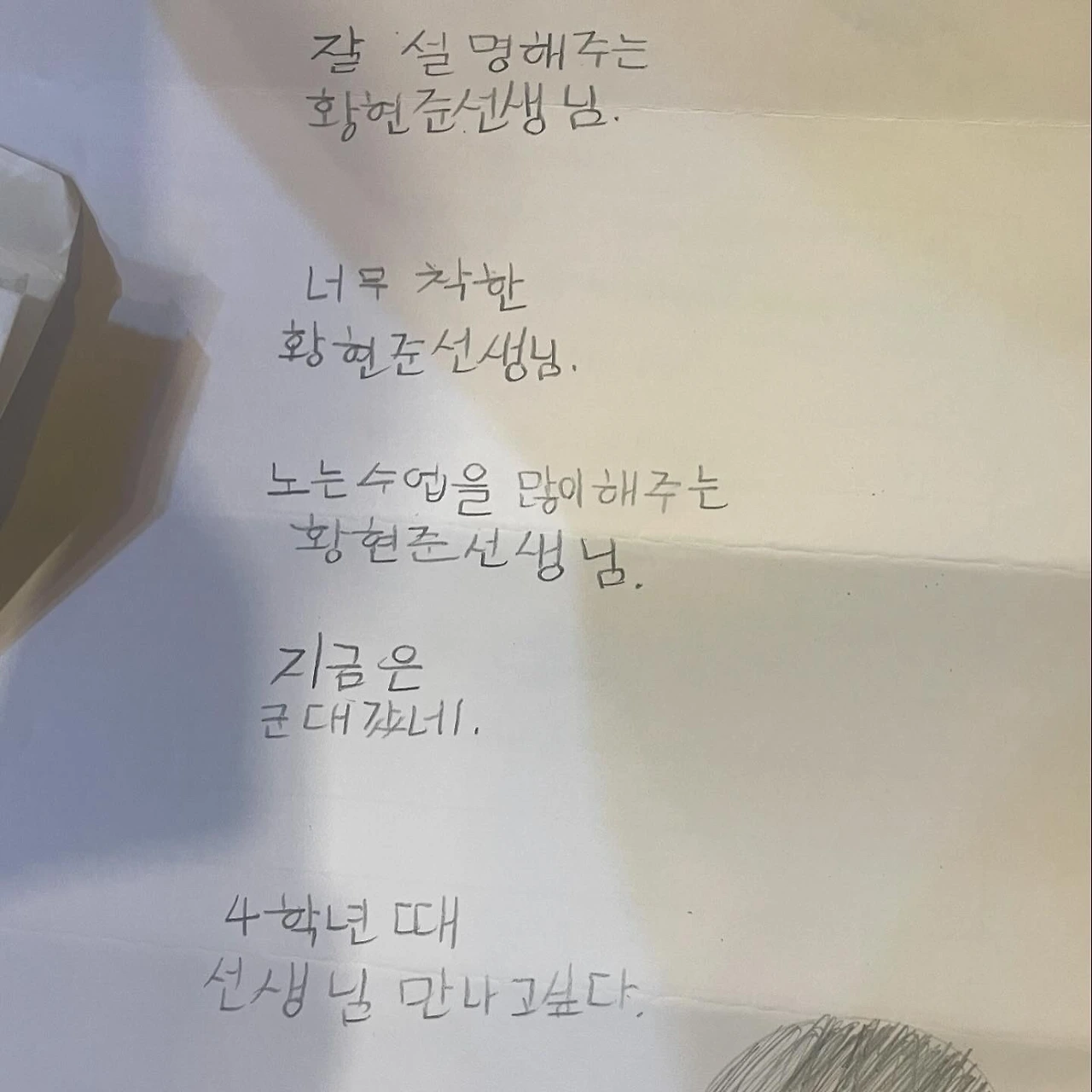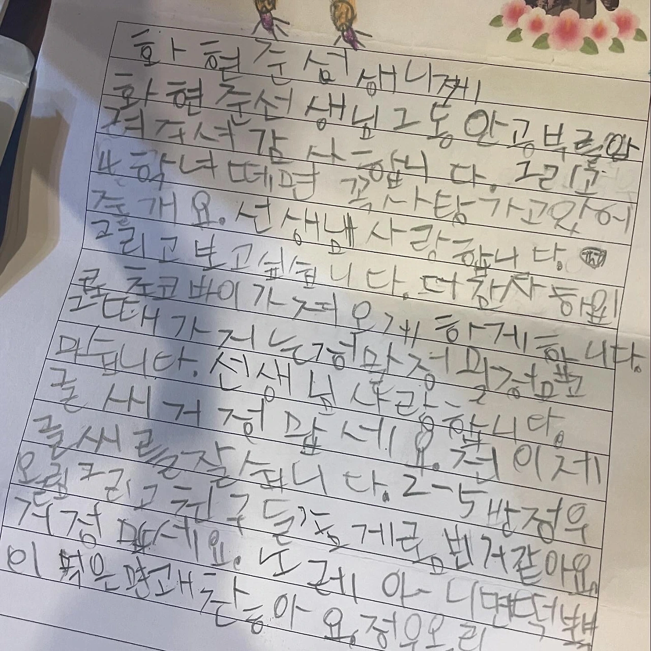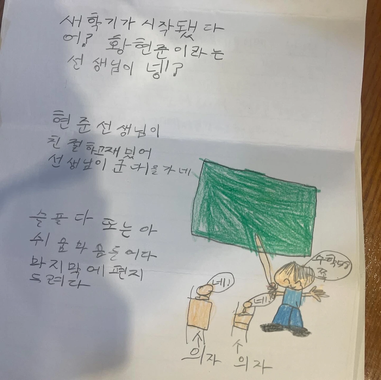 오랜만에 들어보는 제자들의 이름에 얼굴을 떠올려보기도 하고 편지를 읽는 내내 입꼬리가 내려가지 않았다.