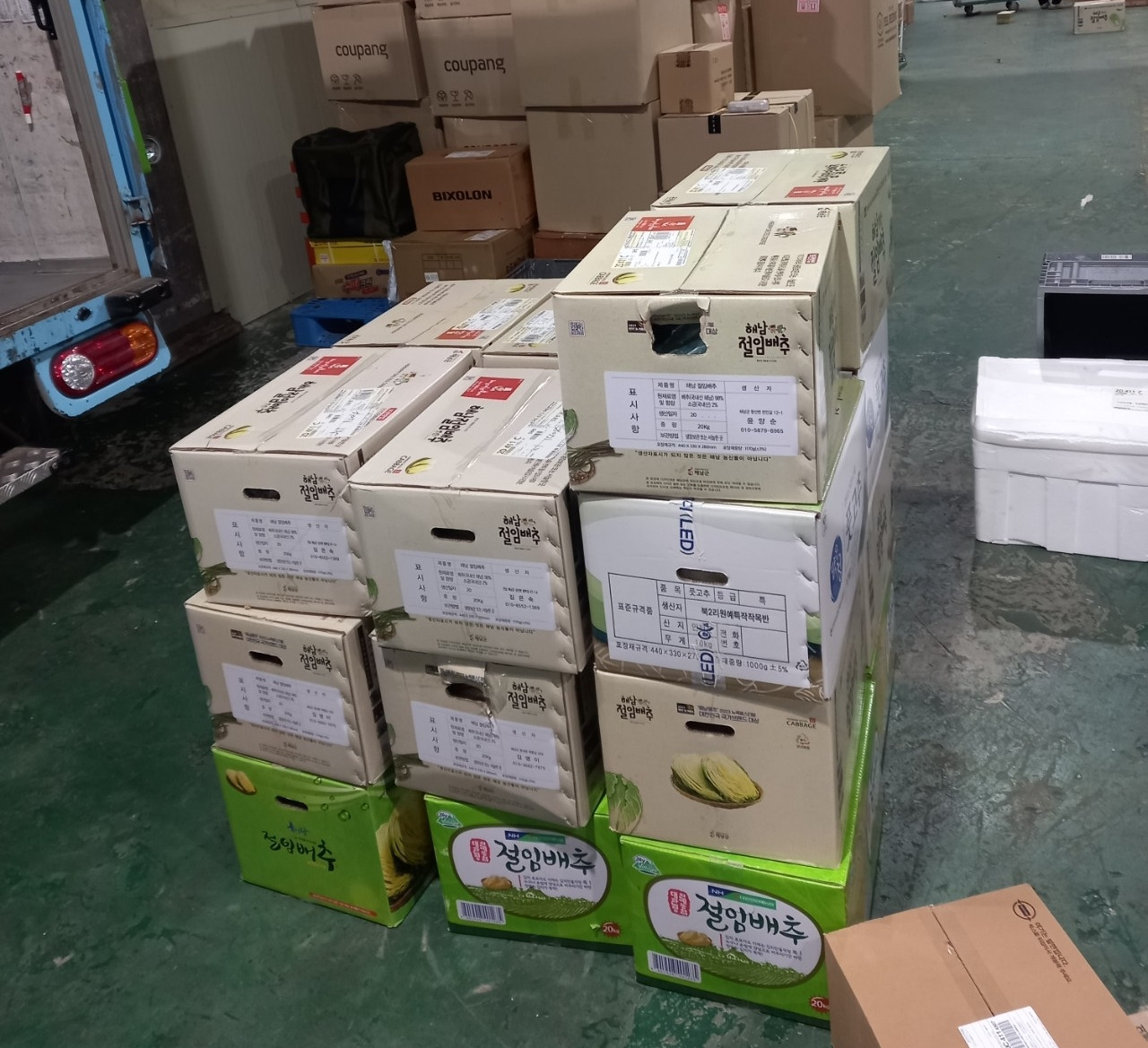 쩔배나 김장김치를 정신없이 받으면서 가장 신경이 곤두서는 것은 파손으로 내용물이 새어 나오는 경우이다. 다른 상품을 함께 파손시키기에 가장 신경이 쓰인다. 즉시 테이핑을 하거나 비닐 등으로 다시 재포장해야 한다. 테이프, 비닐 등 비품이 더 자주 바닥난다.
