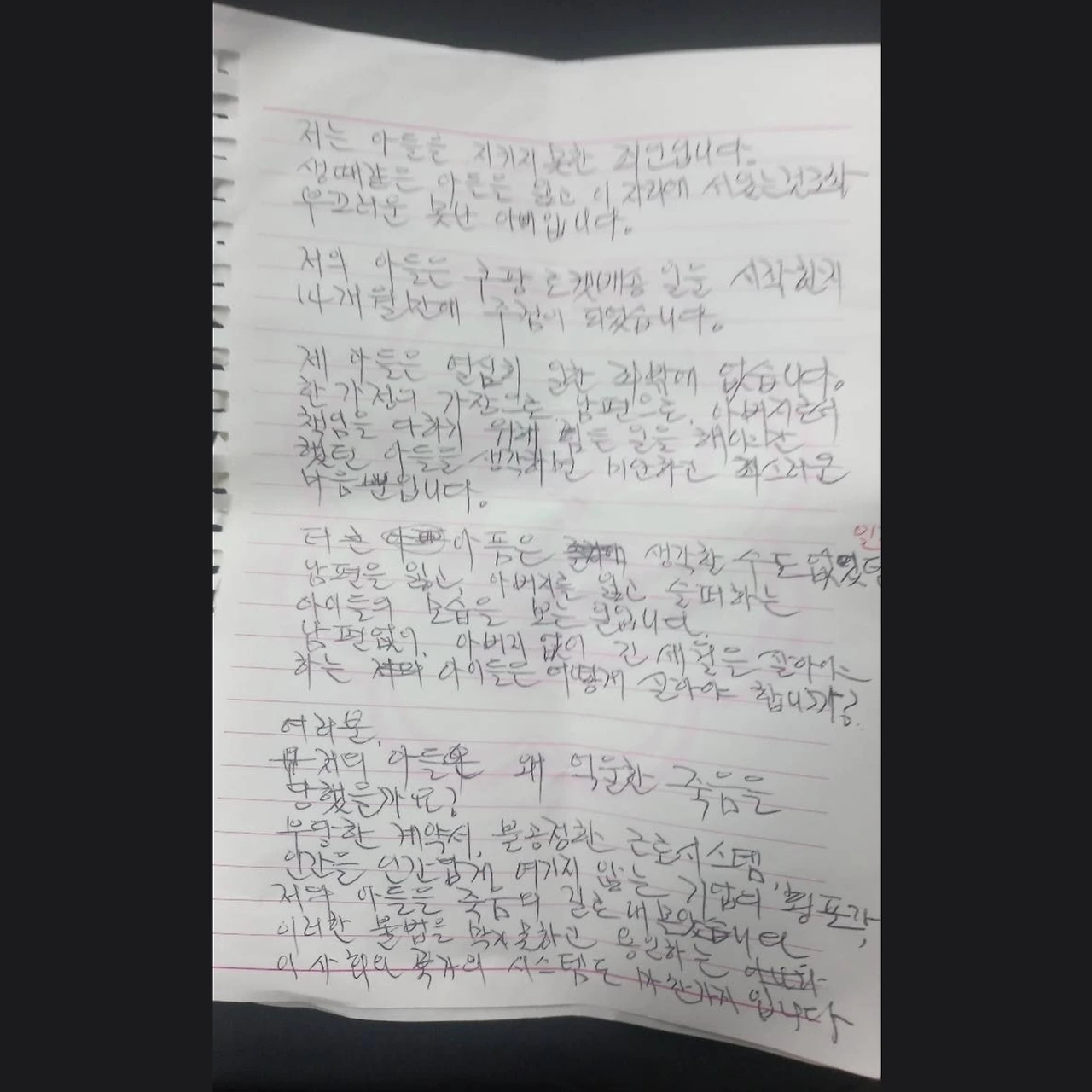 다시는 저의 아들과 같은 억울한 죽음이 없는