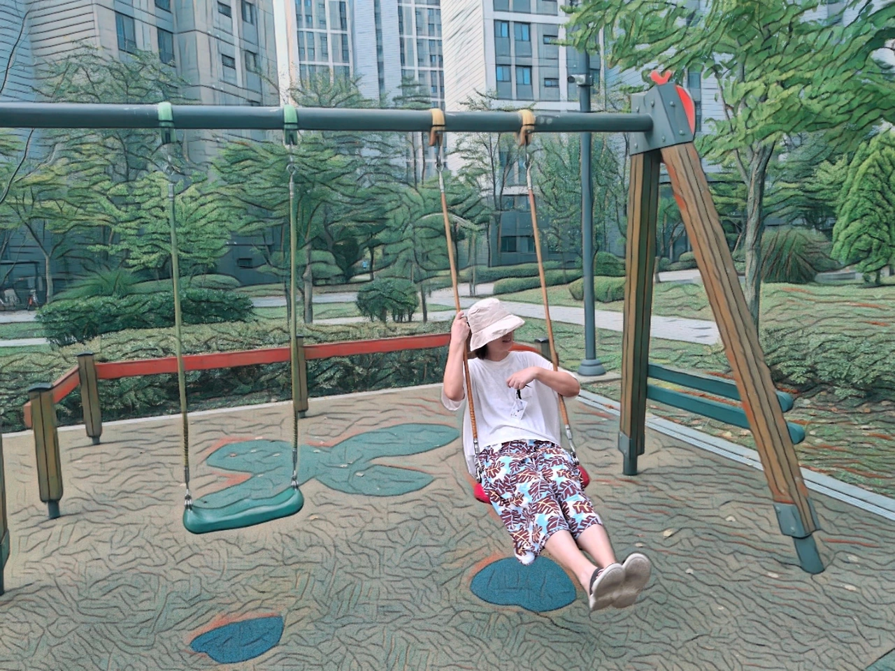 삐그덕 그네를 따라 앞뒤로 오가는 동안, 우리는 현실에서 과거로, 다시 또 현실에서 미래를 슬며시 넘나들고 있었다.