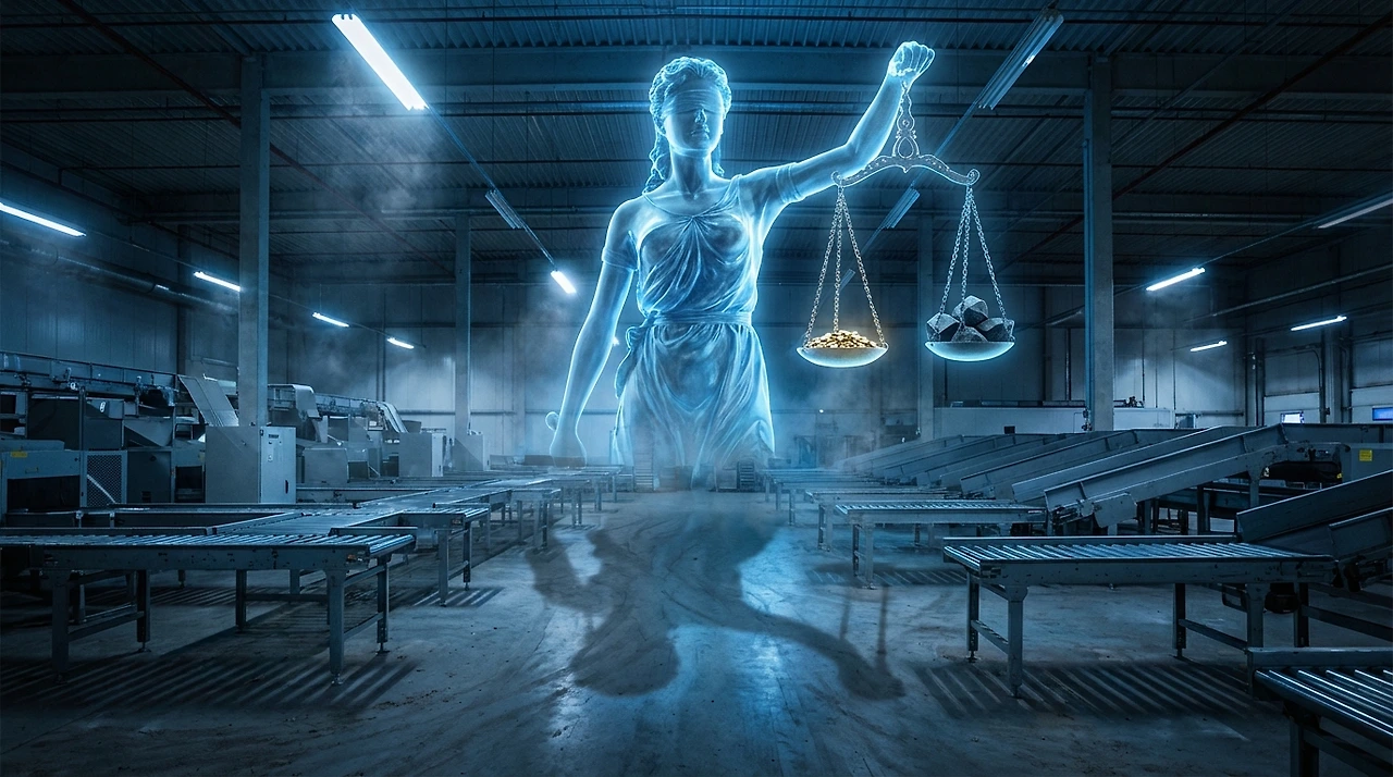 정의의 여신 '유스티치아'(Justitia)는 안개처럼 자욱한 소음 속에서 한 손에는 저울을, 다른 한 손에는 날카로운 칼을 쥐고 서 있었다. 본래 그 저울은 세상의 뒤틀린 권리관계를 바로잡는 신성한 도구였으나, 이곳 현장의 여신이 높이 든 저울은 오로지 택배기사의 비루한 <을의 처지>와 짐짝에 매겨진 <헐값>의 무게만을 가혹하게 가늠할 뿐이다.