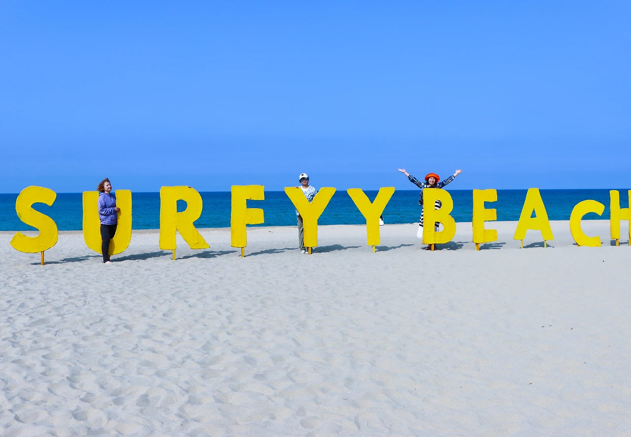 Surfyy Beach. 입구부터 이국적인 풍경에 마음이 들떴다. "여기가 진짜 한국 맞아?" 모래, 야자수, 음악... 밤이면 초콜릿 복근의 남자들과 섹시한 여인들이 모이는 곳이라며 "밤엔 미성년자 출입금지야" 누군가 농담처럼 말했지만, 지금은 대낮. 우리에겐 아이들과 함께한 여름의 한 장면이었다.