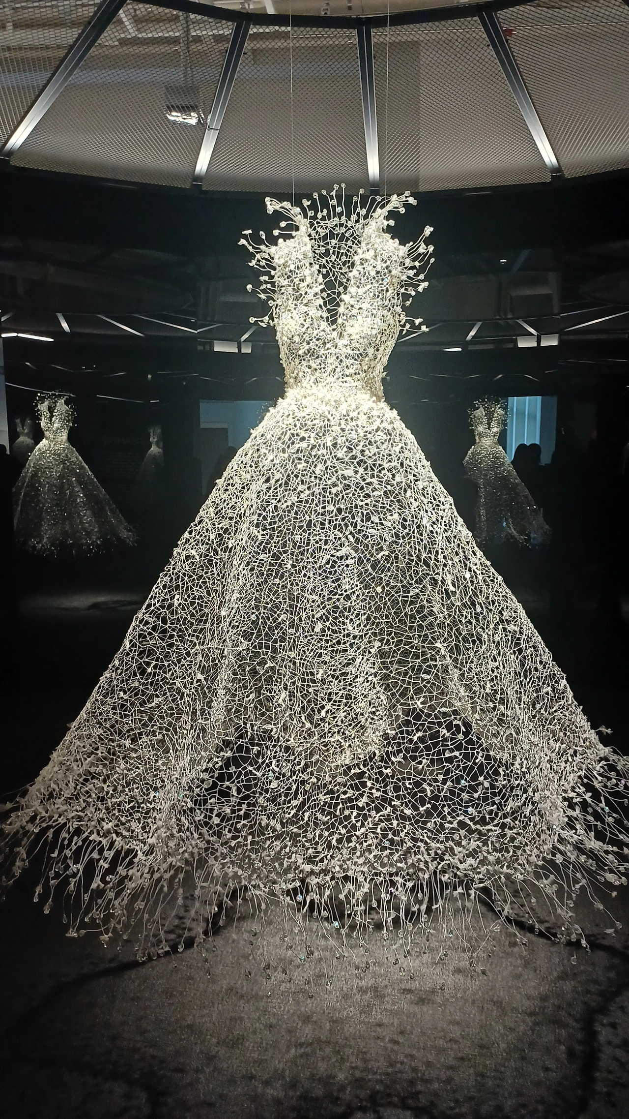 와이어, 구슬, 노방, 폐소재로 만든 옷들인데 대형 공간 설치 작품처럼 압도적이다.
