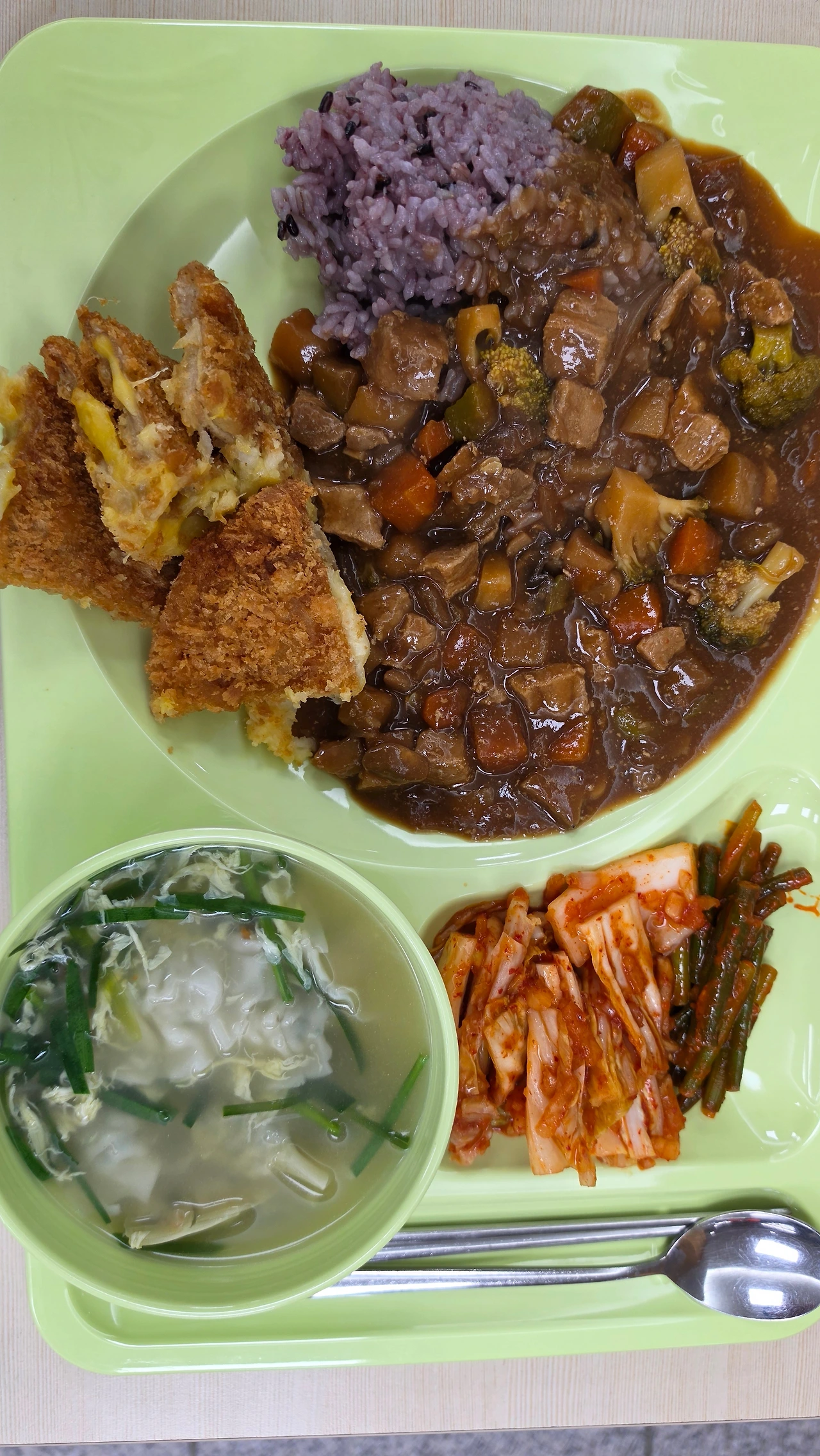 드디어 배식 종료. 각자 식판을 들고 밥을 먹었다. 돈가스가 좀 더 따뜻했으면 좋겠다는 생각이 스쳐갔지만, 허기 앞에서 그런 아쉬움은 오래가지 않았다. 맛있었다.
