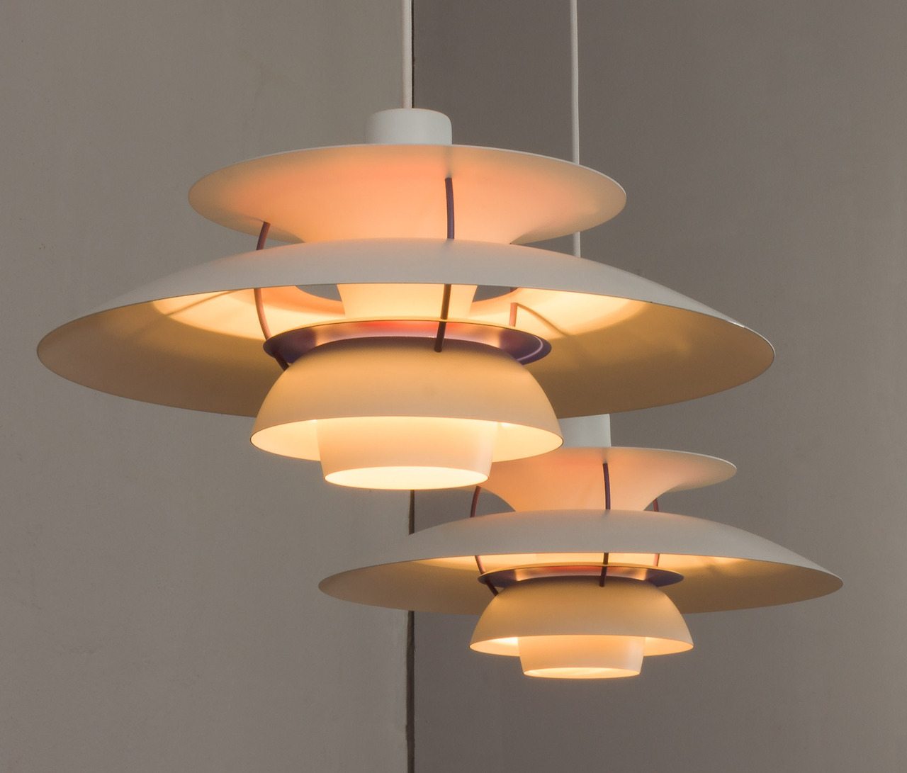 그리고 다방향으로 고르게 퍼지는 빛도 차별점인 것 같아요. 디스크들이 빛을 다양한 각도로 반사하기 때문에 방 안의 어느 위치에서도 자연스럽고 조화로운 빛을 경험할 수 있어요. 한쪽으로만 집중되지 않고, 전체적으로 퍼지도록 부드럽게 설계된 거죠. PH 시리즈를 보고 간접조명의 시초라고 말하기도 하더군요.