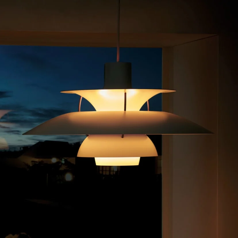반갑습니다. 저는 명품 조명 브랜드 루이스폴센의 PH 5 입니다. 덴마크의 조명 디자이너 폴 헤닝센(Poul Henningsen)에 의해 1958년에 태어났어요. 저는 눈부심 없이도 공간을 부드럽고 고르게 비추는 특별한 구조를 가지고 있어요. 세 겹의 디스크(갓)가 제 몸을 감싸고 있어, 빛이 직접적으로 내려오는 대신 부드럽게 반사되어 퍼지죠. 그래서 어느 방향이든 편안하게 빛을 받을 수 있도록 도와줘요. 저는 특히 집 안의 따뜻하고 아늑한 공간을 만들어주는 데 유용합니다.