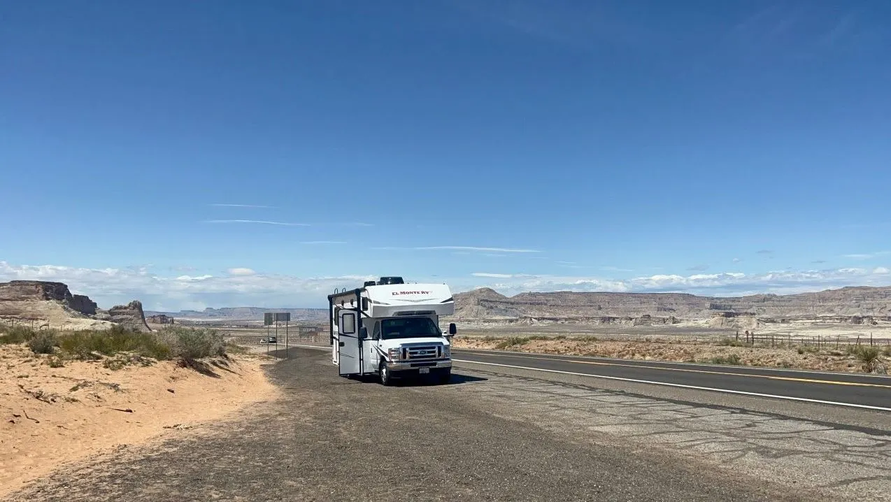 어느새, 애리조나주 경계에 도착했다. 우리는 유타주를 빠져나가는 길이지만, 맞은편에서 오는 차들은 애리조나주를 빠져나가는 중이다.