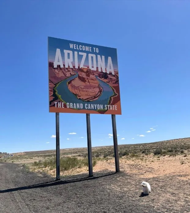 애리조나주와 유타주 경계에는 약 300미터가량 거리를 두고, 길 옆으로 [Welcome to ARIZONA]와 [Welcome to UTAH]의 사인이 자리하고 있다.