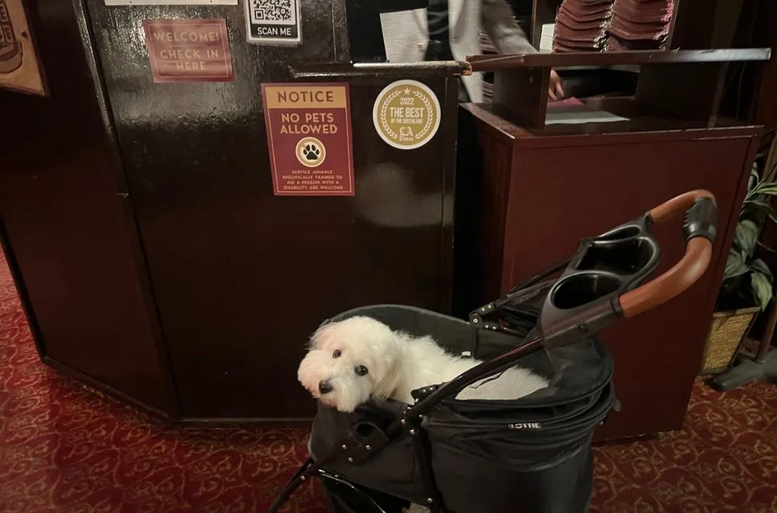 나탈리가 입구에서 구름이를 데리고 있었고, 나는 카운터로 향해 입구에 보이는 개모차를 가리키며 구름이에 대해 설명을 했다.
