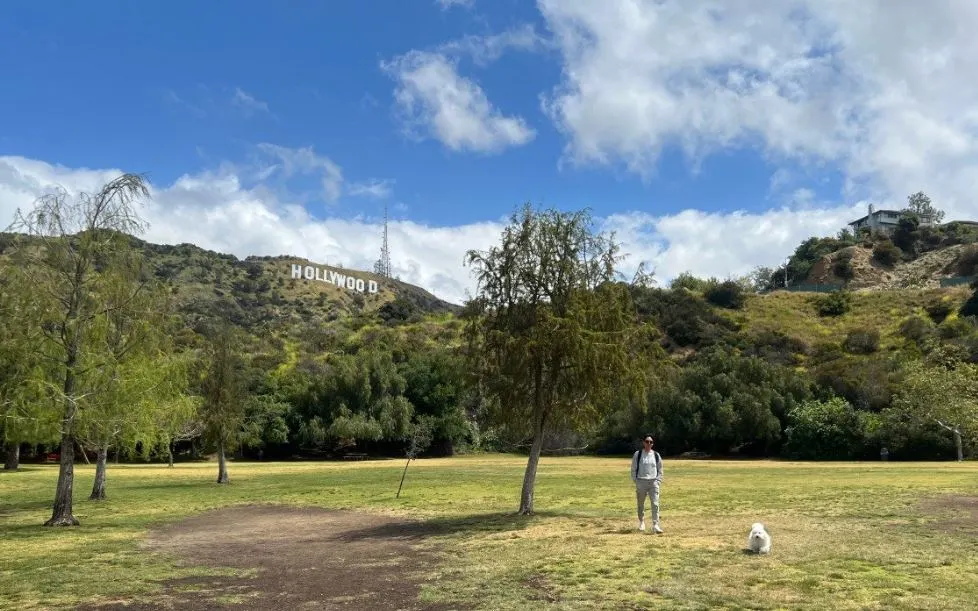 푸릇푸릇한 잔디와 초록초록한 나무들 너머 언덕 위에 헐리우드 사인이 보이고, 그 아래로 해를 받고 있는 구름이는 유난히 더 하얘 보이는데, 작은 원을 그리며 빙글빙글 몇바퀴 돌더니 자세를 잡고는 씨익 웃는다.
