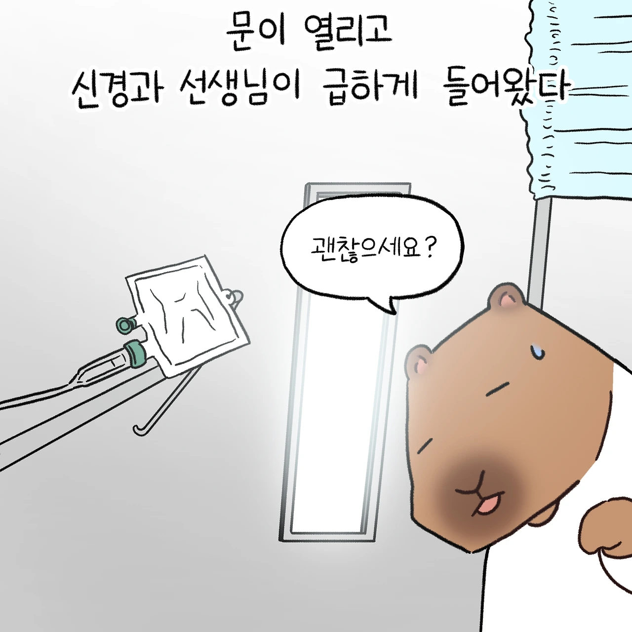 주변 사람들의 안쓰러운 시선 속에서 '이게 정말 멈추기는 할까?' 하는 공포가 밀려오던 그때, 굳게 닫혔던 문이 열리며 신경과 전문의가 급히 들어왔습니다.