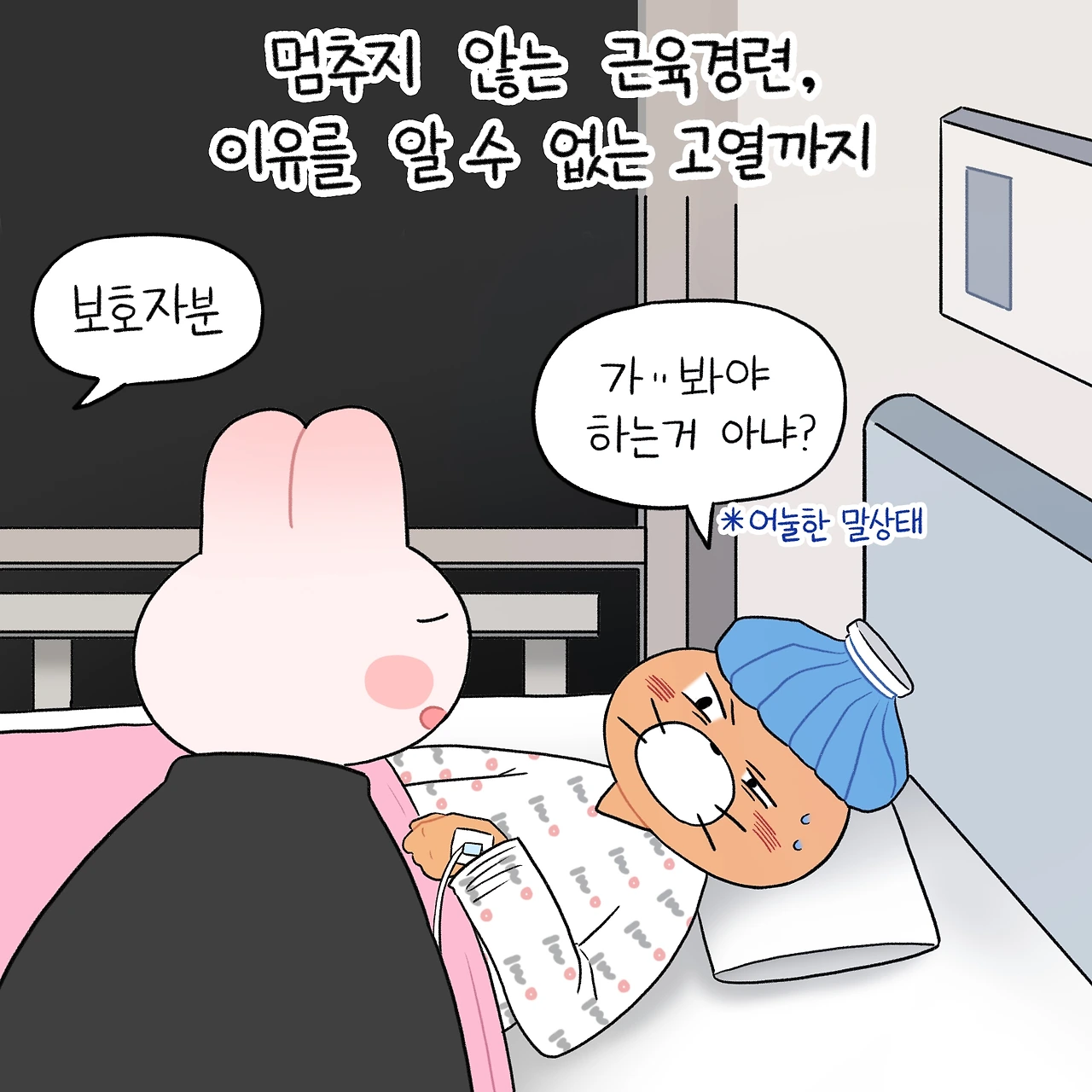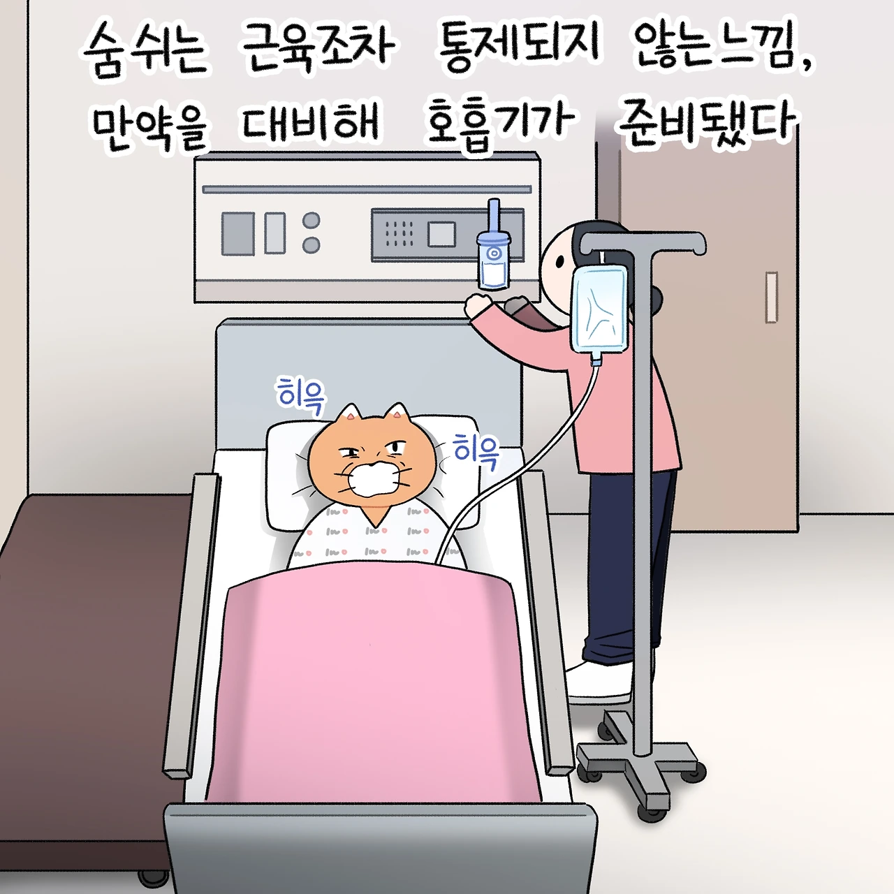들썩이는 근육, 통제되지 않는 숨소리. 혹시 모를 상황을 대비해 산소호흡기가 머리맡에 놓였다.내 몸의 주인인 내가, 내 몸에 대해 아무것도 설명할 수 없게 된 밤이었다.