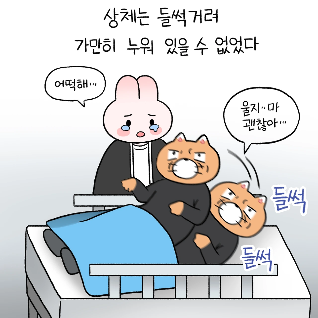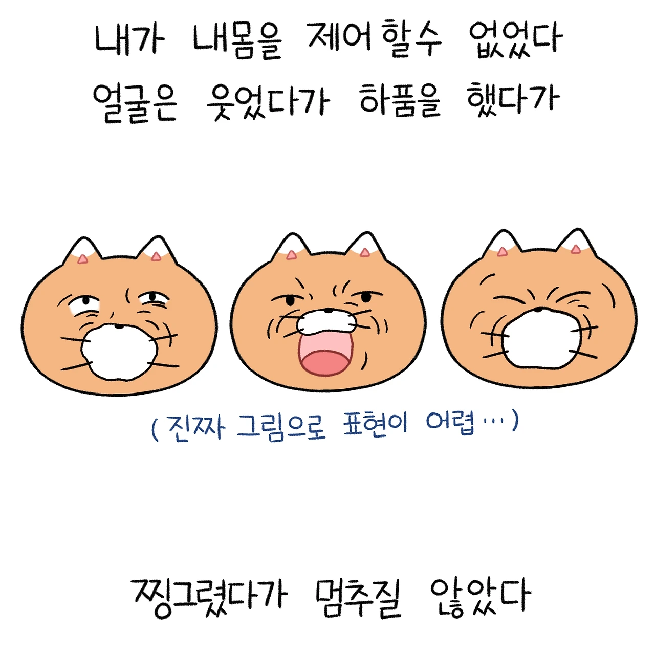 얼굴은 내 의지와 상관없이 웃었다가, 하품을 했다가, 다시 일그러지기를 반복했고, 상체는 침대 위에서 쉴 새 없이 들썩거렸습니다.