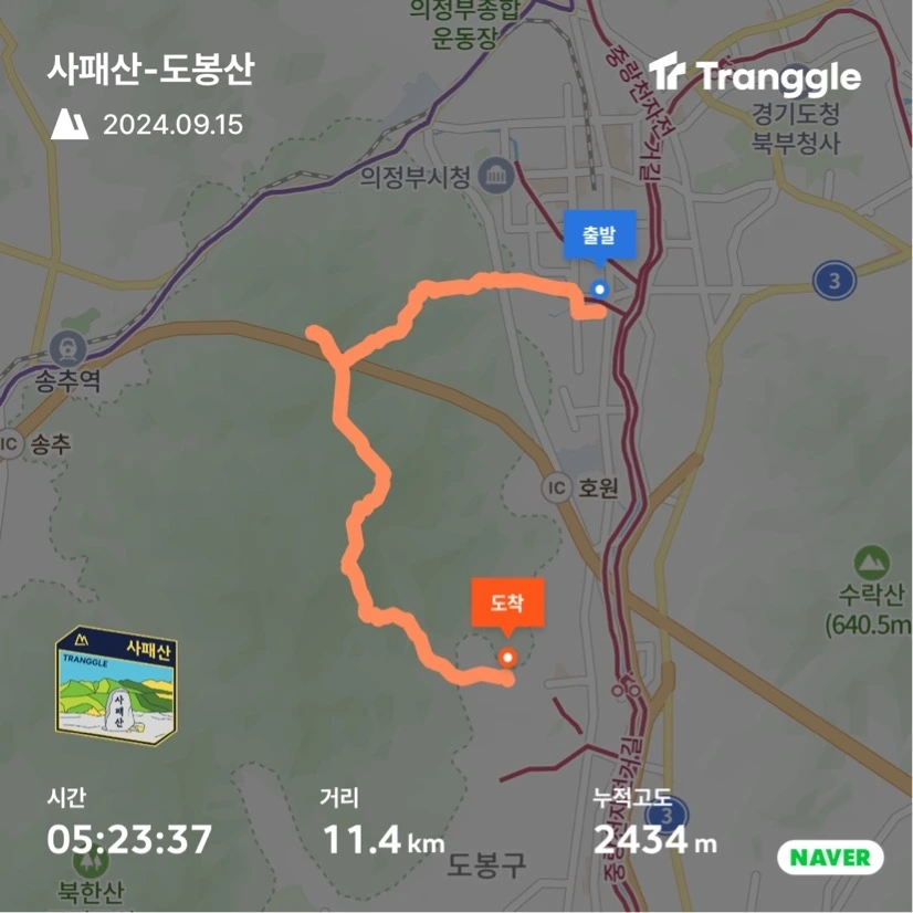 때는 24년 추석 연휴. 사패산+도봉산 연계산행을 계획했는데 날씨가 계속 안 좋았다. 역대급으로 더운 추석이기도 했지만 자꾸 비가 잡혀 있었다. 매일 기상청 홈페이지를 들락날락하며 날씨를 살피던 중, 비가 없는 날을 발견했다. 당일 새벽에도 확인해 보니 오전에는 내리지 않고, 오후 2-3시쯤부터 비가 내릴 예정이라고 나왔다. 그 시간이면 하산 후 집에 도착할 테니 운이 좋다고 여기며 든든하게 배를 채우고 출발했다.
