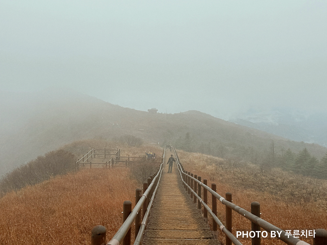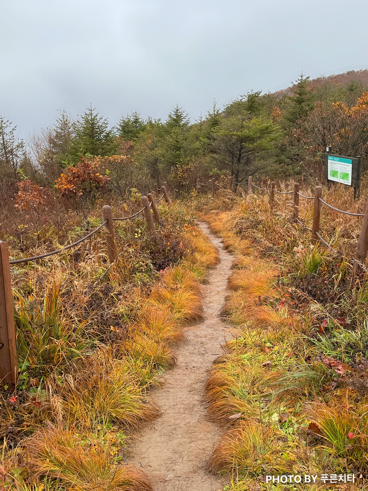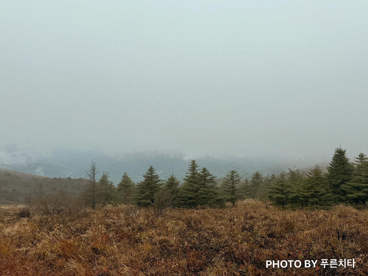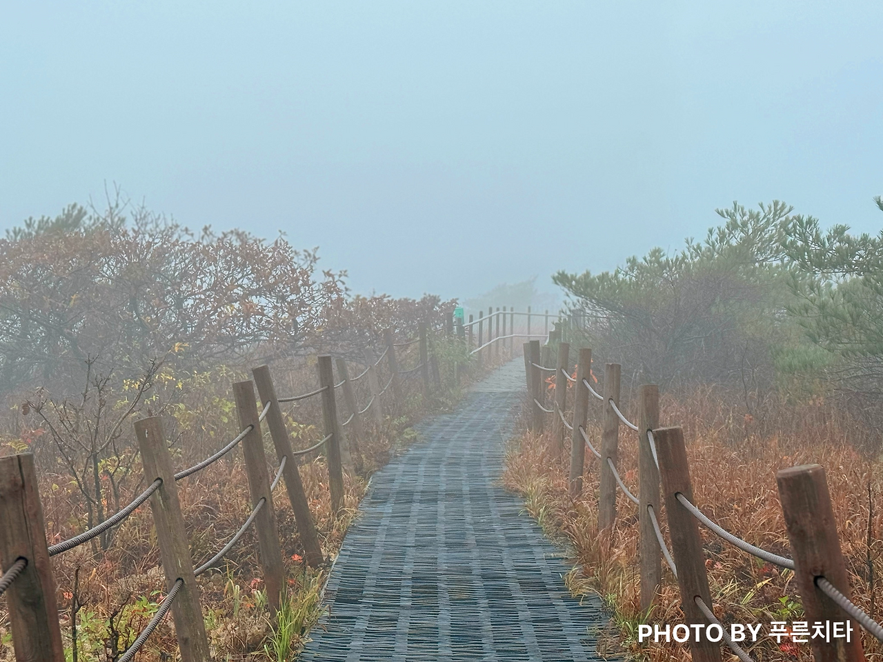 있었다. 후기대로 소백산의 최고봉인 비로봉에 가까워지자 바람의 온도가 달라졌다. 옷을 챙겨가서 다행이었다. 등산로 입구에선 덥길래 괜히 짐만 되는 것 같아서 조금 후회했는데 없으면 큰일 날뻔했다. 사실 추위를 느끼고 나서 옷을 입으면 안 된다. 춥기 전에 미리 꺼내서 입어야 체온을 보호할 수 있기 때문이다. 머리론 알지만 등산 초보였던 시절이고, 낯선 지형과 안개로 인해 어느쯤에 입을지 감을 못 잡아서 타이밍을 놓친 것 같다.
