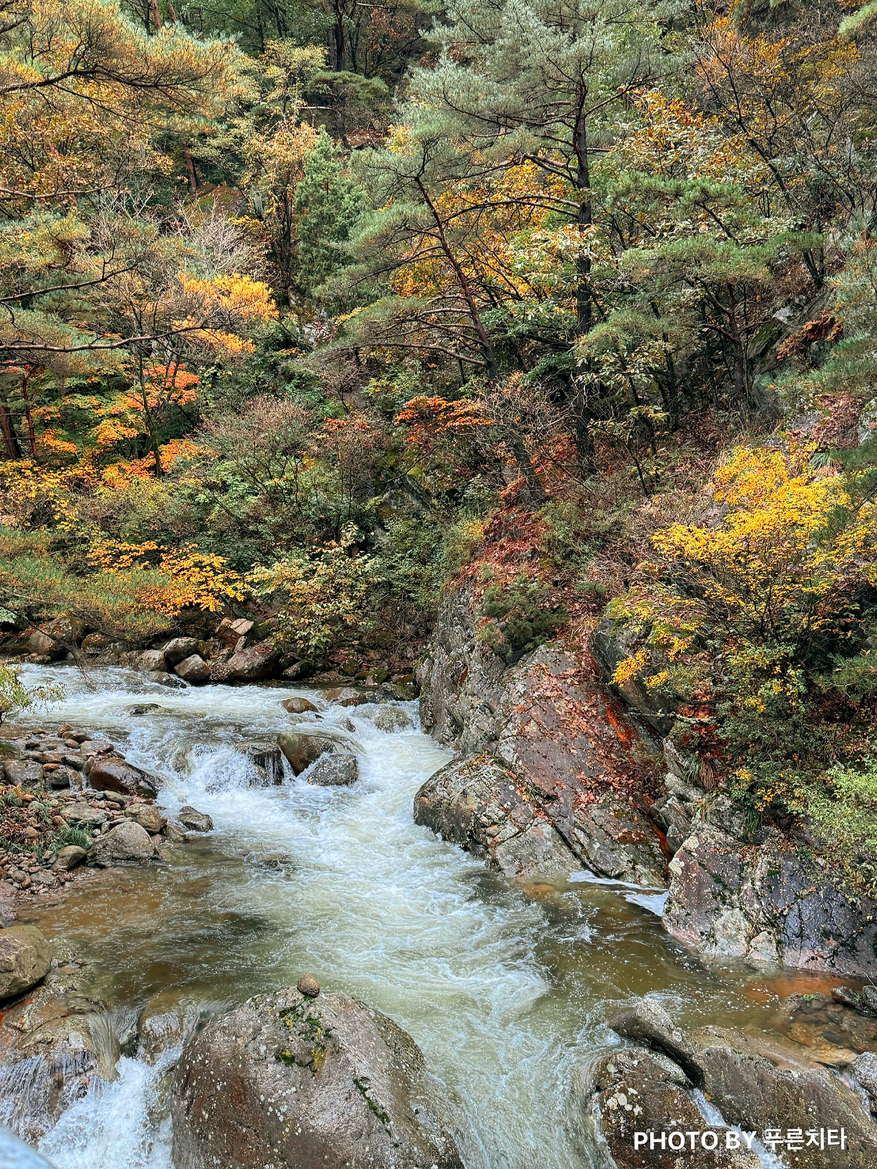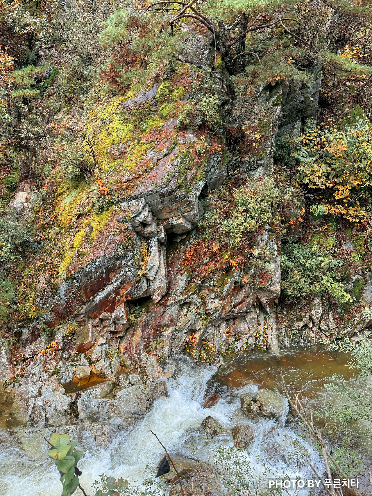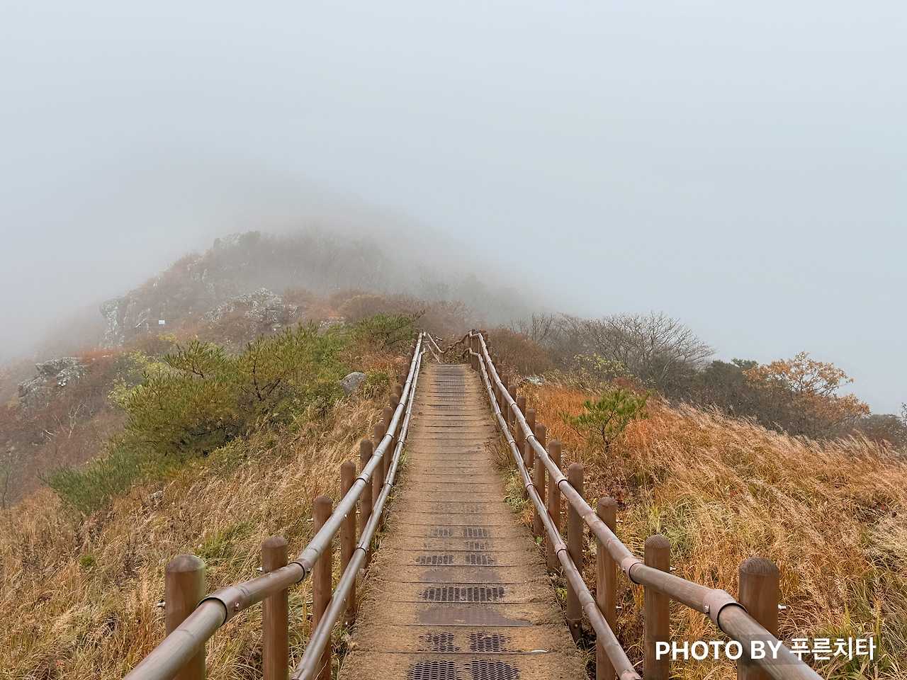 하산길은 완만하고 긴 코스였다. 평소라면 반기지 않았겠지만 이 날은 예외였다. 길이 미끄러웠고, 빗물이 등산로 일정 구간에선 얕은 계곡처럼 통째로 흐르기도 했기 때문이다.