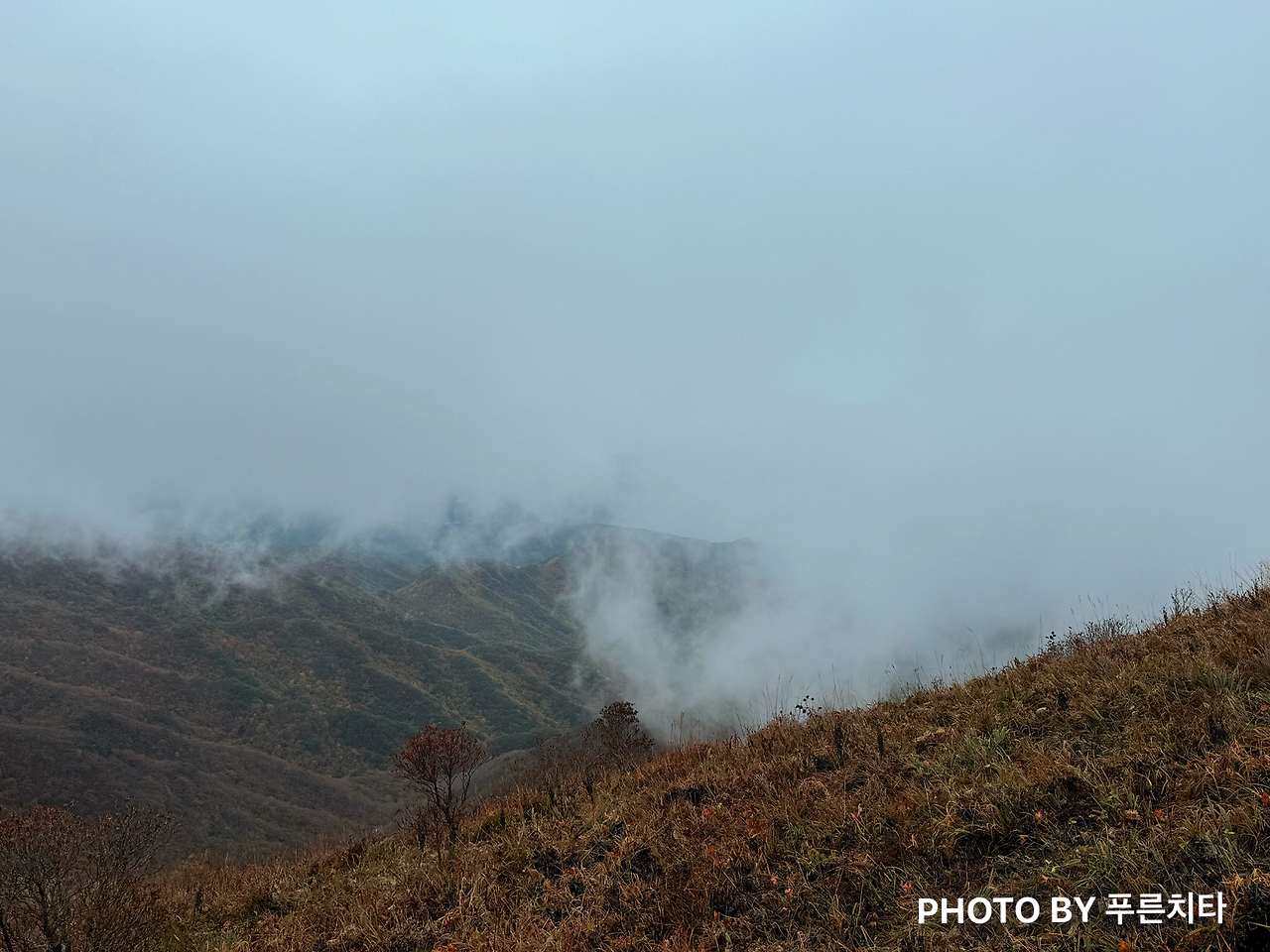등산하면 산마다, 계절마다 각각의 매력이 있는 멋진 광경을 접하게 된다. 날씨가 맑으면 시야가 선명하게 보이고, 사진도 잘 나와서 좋다. 하지만 '살면서 이런 광경을 지금 아니면 언제 또 볼 수 있을까'하는 생각이 드는 순간은 날씨가 좋지 않을 때, 기대하지 않았던 상황에서도 찾아왔다. 고생했기에 더 값지게 느껴진 것 같다.