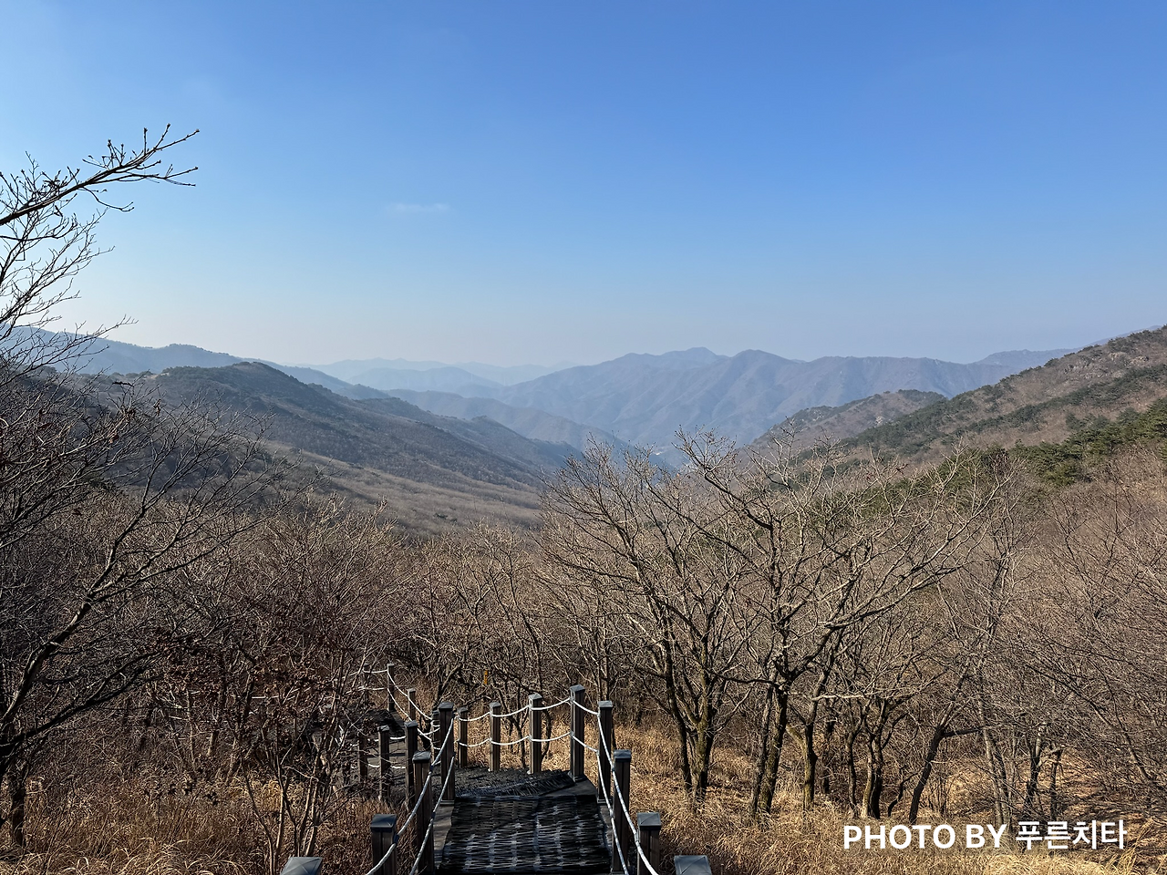 그렇게 우여곡절 끝에 울산역에 도착해 친구와 합류했다. 친구 차를 타고 향한 곳은 신불산 자연휴양림 주차장. 매번 원정산행 갈 때마다 날씨가 안 좋았는데 이 날은 처음으로 좋았다. 1월 중순이었지만 신불산 정상으로 올라가는 길엔 눈이 전혀 없었다. 경사는 가파르지 않았지만 낙엽이 많은 구간이 있어서 미끄러지지 않게 조심하며 올라갔다.