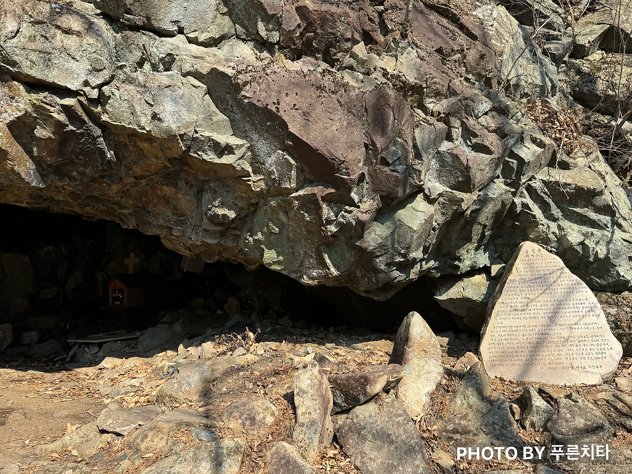 신불산 자연휴양림 주차장으로 내려가는 길은 임도도 있어서 편했다. 가는 길에 웬 굴이 있어서 살펴보니 ‘죽림굴’이라는 천주교 성지였다. 1839년 기해박해 때 관아의 손길을 피해 안전한 곳을 찾던 신자들이 모여 움막을 짓고 생계를 유지했으며, 1860년 경신박해 때는 우리나라 2번째 사제인 최양업 신부가 은신하며 신자들을 돌보았던 곳이라고 한다. 지금이야 길이 잘 닦여있고, 위험한 동물이라곤 멧돼지 정도지만 그 시절엔 호랑이도 많았는데 오죽하면 깊은 산속으로 피했을까 싶다.