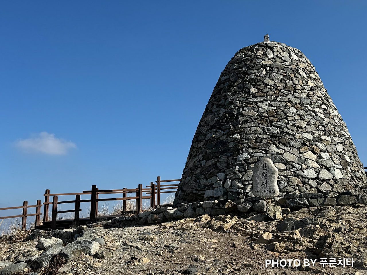 간월재까지는 능선을 따라 이동해서 수월하게 갈 수 있다. 이번에 간 코스에서 가장 가파른 구간은 바로 간월재에서 간월산 정상으로 올라가는 길! 약간의 너덜길도 나오고, 경사가 좀 있는 편이다. 아침부터 기차 타느라 진이 빠져서 그런지 난이도 대비 더 힘들게 느껴졌다. ‘메달 하나 받자고 멀리까지 가서 이렇게 고생하는 게 맞는 걸까?’하는 현타 섞인 생각이 들기도 했다.