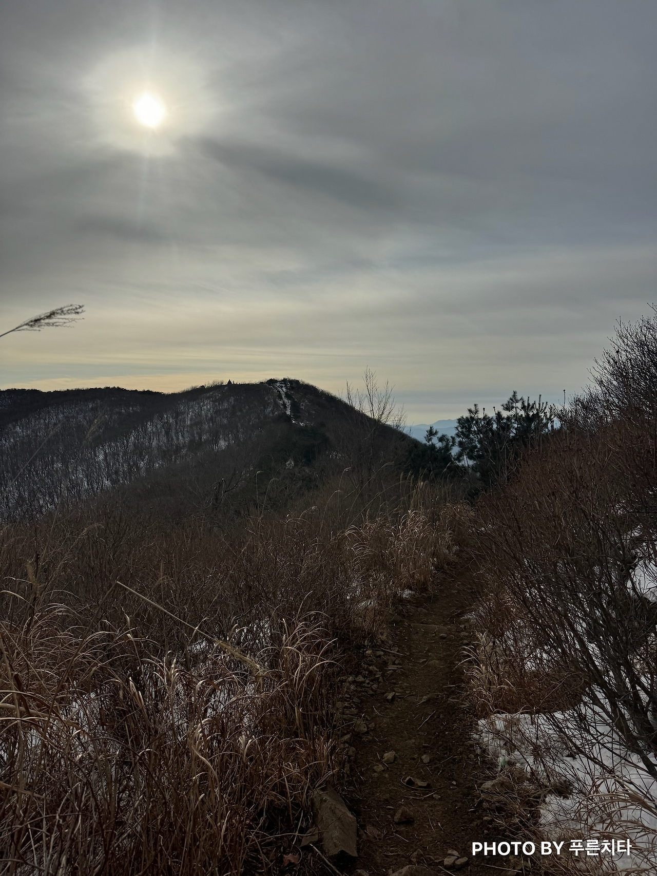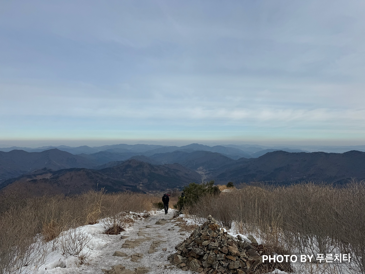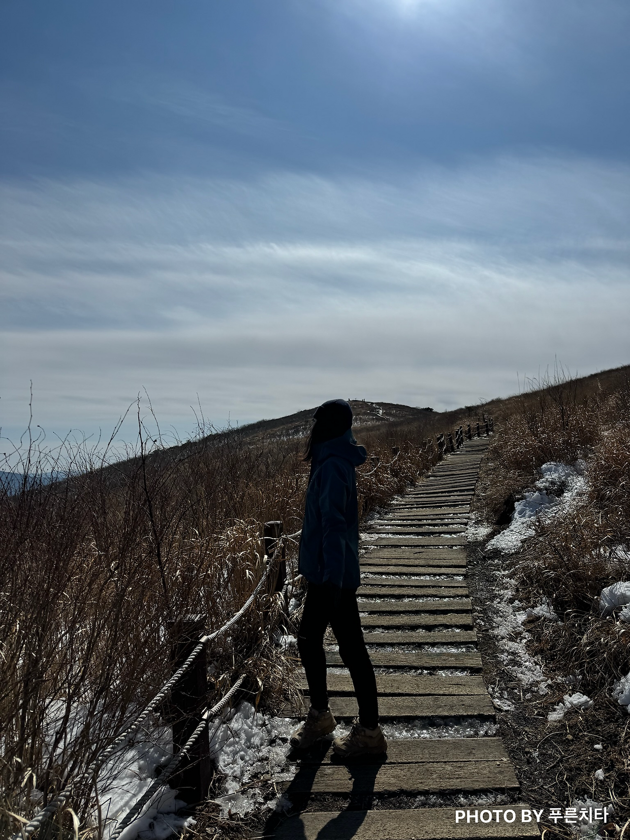 고헌산은 와항재에서 올라가면 왕복 5km 정도로 코스가 짧다. 친구 차에 배낭을 놓고, 폰과 아이젠만 챙겨서 간편한 차림으로 올라가던 중에 장갑을 안 챙겼다는 사실이 떠올랐다. 1월에 갔던 간월산, 신불산은 정상에서도 따뜻했고, 경남 날씨 자체가 서울보다 기온이 높으니 괜찮을 줄 알고 그냥 올라갔는데 전혀 괜찮지 않았다. 고헌산 정상이 가까워지면서 조망이 트이자 바람이 거세게 불었다. 조금 시린 수준이 아니라 손이 온통 빨갛게 되고 아릴 정도였다.