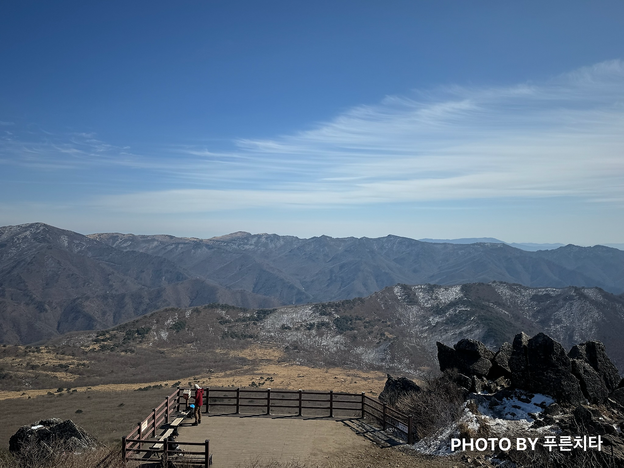 재약산 정상에서 본 풍경은 천황산하고 또 다른 매력이 있었다. 정상에 계시던 아저씨께서 “날씨가 좋아서 부산까지 보인다”며 손가락으로 방향을 짚어주셨다. 처음엔 손가락을 보고도 어리둥절한 나와 달리, 친구는 부산에 자주 가서 그런지 금방 캐치했다. 친구가 해운대에 있는 건물이라며 짚어주고 나서야 간신히 알아차릴 수 있었다.