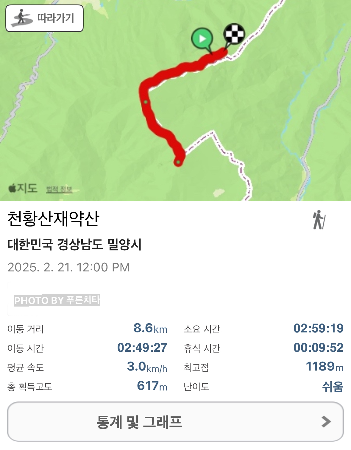 정상 표시석에서 인증샷을 찍고 업로드해야 하는 짧은 순간조차 고통스러울 정도로 바람이 차가웠다. 사진을 올리자마자 망설임 없이 하산을 시작했다. 마음 같아서는 빨리 내려가고 싶었지만 얼어붙은 경사길을 내려가려니 속도를 낼 수도, 주머니에 손을 넣을 수도 없어서 미칠 것 같았다. 차에 도착하자마자 허겁지겁 장갑을 찾아서 꼈는데 천황산까지 이동하는 동안에도 손은 쉽게 따뜻해지지 않았다. 아무리 남쪽에 있어도 해발 1천 미터 이상의 고도를 무시하면 안 된다는 사실을 뼈저리게 체감한 순간이었다.