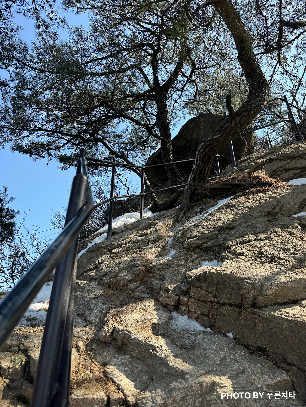 설상가상으로 족두리봉 하산길은 평탄한 등산로가 아니라 암릉길이었다. 작년 가을에 북한산에서 마주쳤던 분이 왜 하산 코스로 족두리봉을 추천하지 않았는지 이해가 되더라. 그나마 햇볕이 잘 들고, 고도가 낮아서 얼음은 없는 게 다행이었다. 발에 힘이 잘 들어가지 않아서 잘 내려갈 자신이 없었기에 엉거주춤하게 반쯤은 앉아서, 반쯤은 서서 이동했다. 침착하려 애쓰며 차근차근 가다 보니 다행히 해가 떠있을 때 하산을 마칠 수 있었다. 이 날 고생한 덕분에 3일 동안 심한 근육통에 시달렸으나, 그만큼 체력과 실력이 늘었다는 걸 다음 산행에서 체감하게 된다.