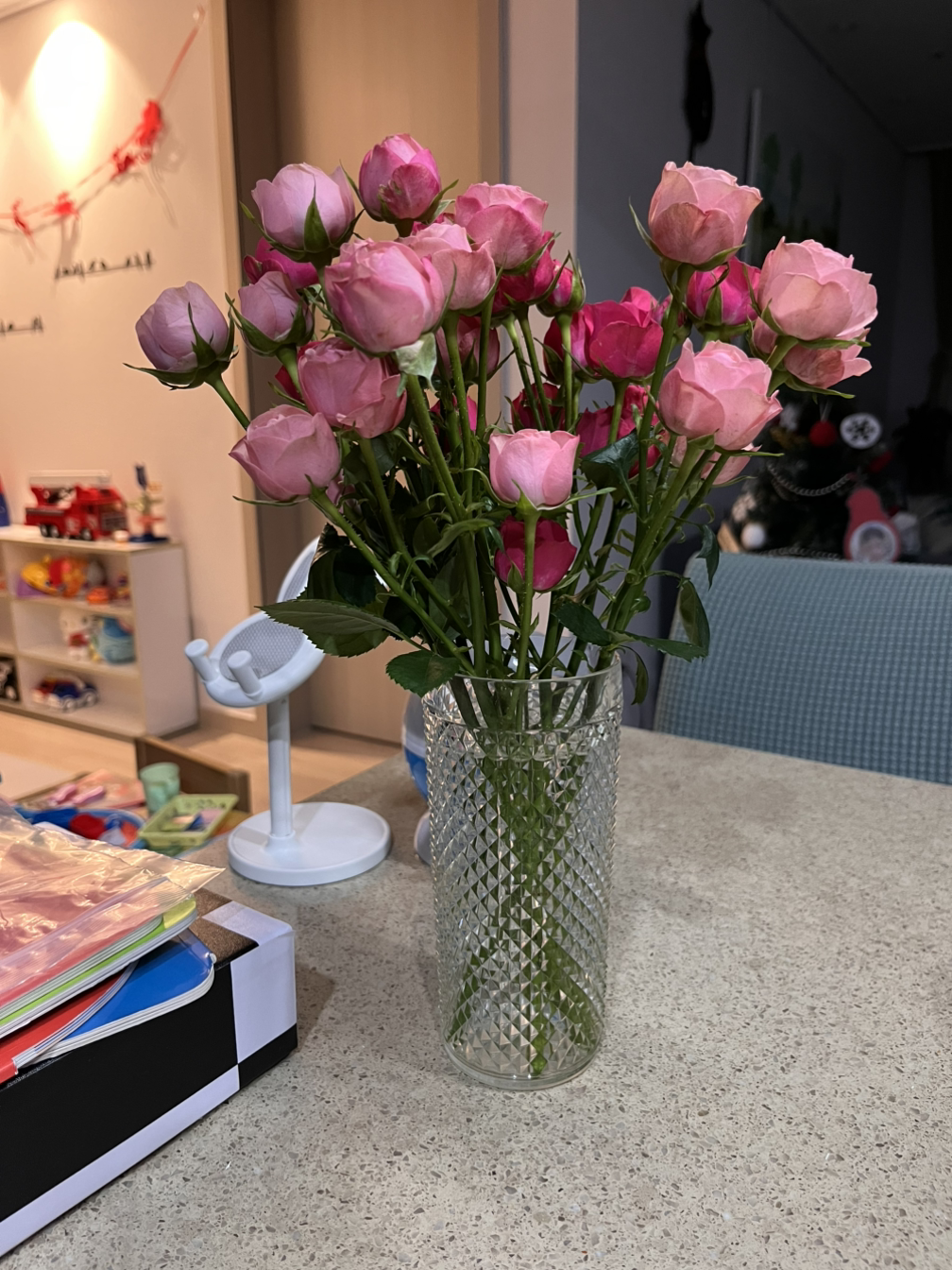 이 장미가 왠지 우리집을 연말까지 행복의 장 안으로 가두어 주는 마법을 부릴 것 같다. 사람들이 왜 꽃을 사는지 이제야 좀 알 것 같다. 결혼 후 아내가 더 행복해하는 모습을 보고 싶어 예쁜 꽃다발을 사 온 남편에게 이제서야 너무 고맙다. 그런 마음이 있었기에 지금까지 이렇게 예쁘게 살 수 있었던 거겠지?