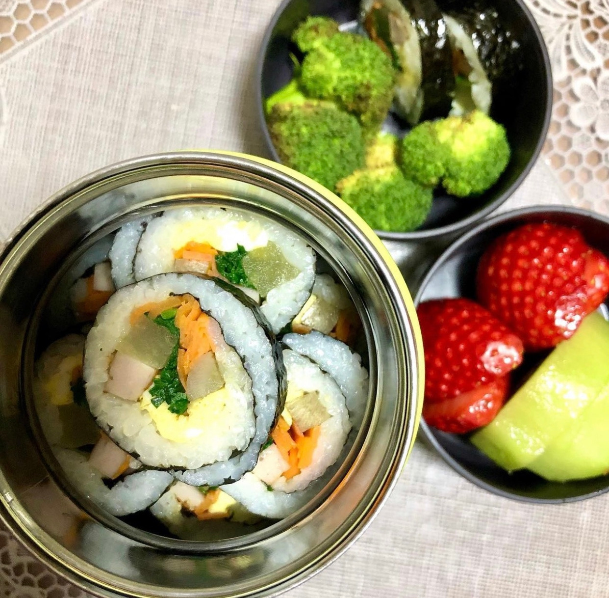 때로는 계란마저 전날 미리 부쳐뒀다가 아침에 흰쌀밥에 휘뚜루 말아준 꼬마 김밥.