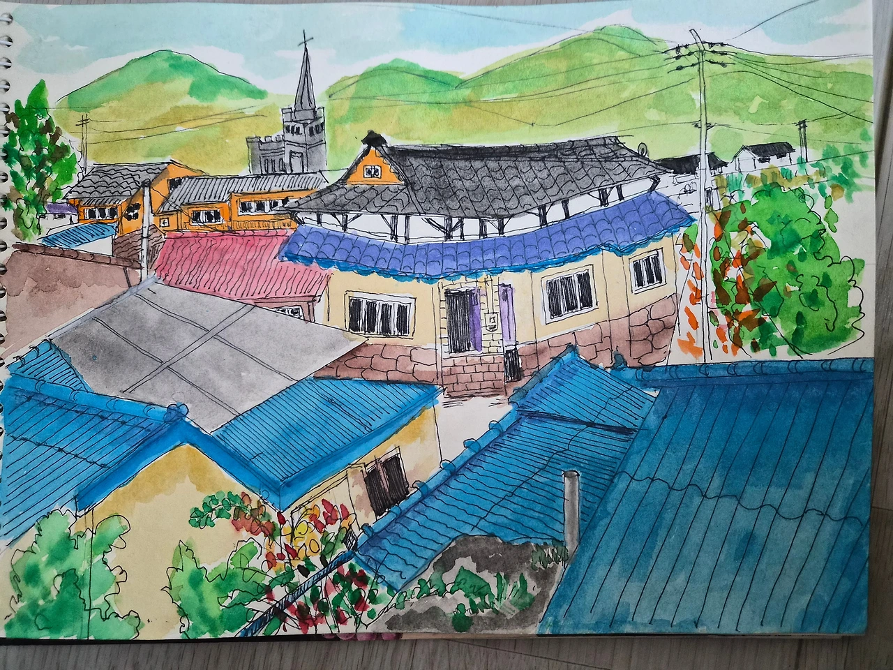 소박하고 옹기종기 집들이 나란히 모여 있는