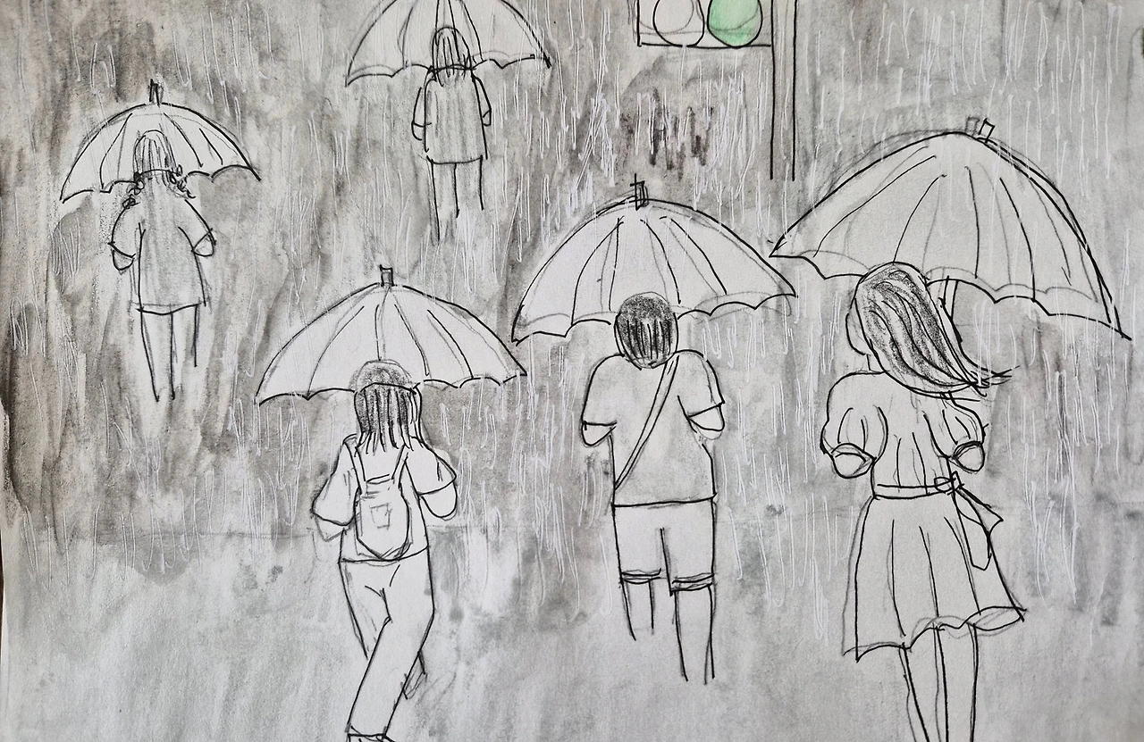 우산아랫사람들은 말없이 걸음을 옮긴다