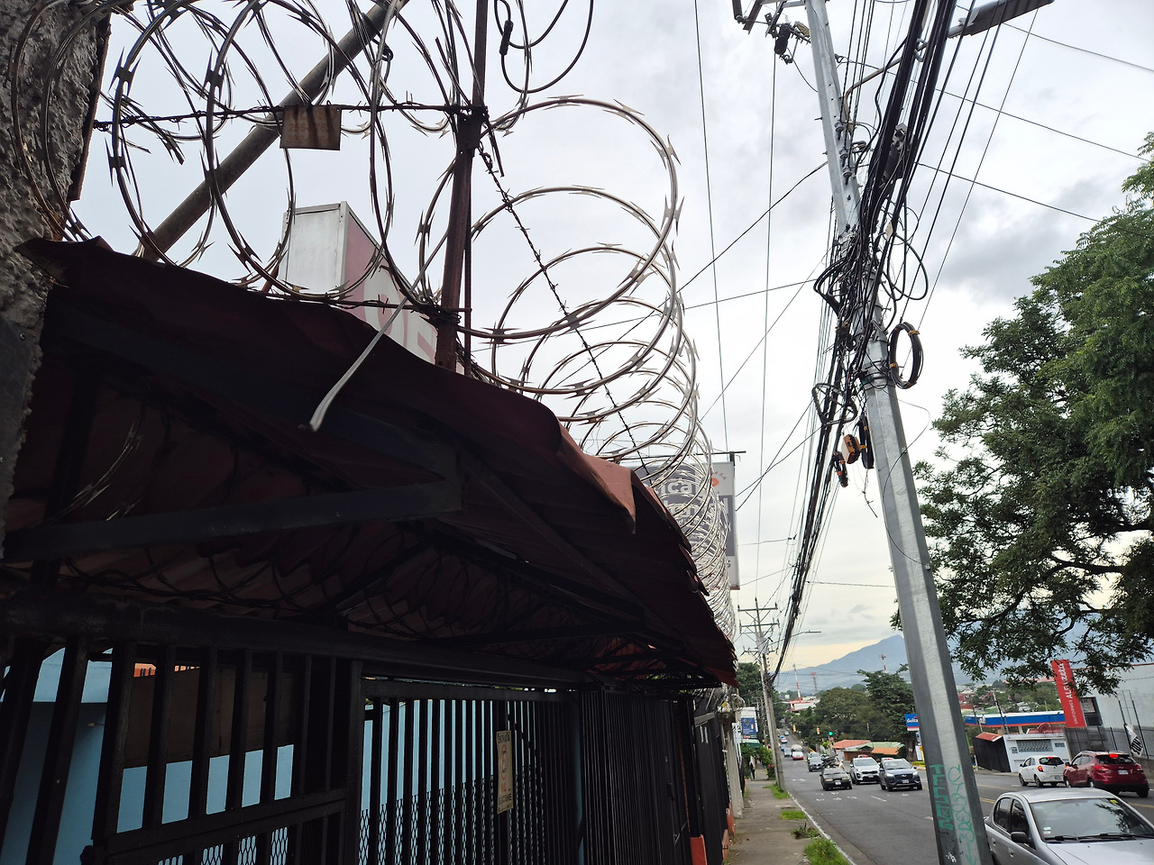 코스타리카의 담장은 특이하게도 철조망이 둘러져 있다. 마치 교도소를 연상하는 그런 철조망도 부족한 경우에는 전기가 흐르는 전기담장이 설치된 집도 많다. 도둑이 많기는 한가 보다.