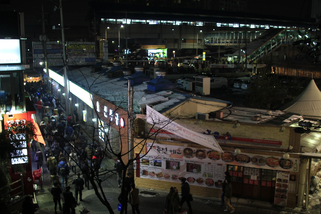 퇴근 이후에는 이 42계단을 내려와 먹자골목에서 저녁을 먹으며 식당에 않아 지나가는