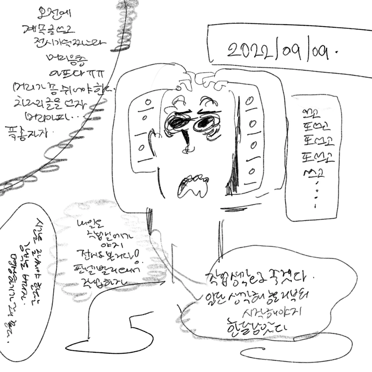 조릅이의 낙서 일기_ 22 작업 기획으로 머리 터질 듯